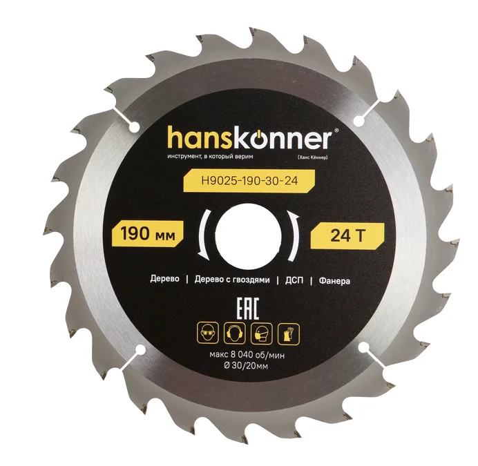 Пильный диск по дереву ArmorPiercing 190x30/20мм, 24 зуба, Hanskonner H9025-190-30-24