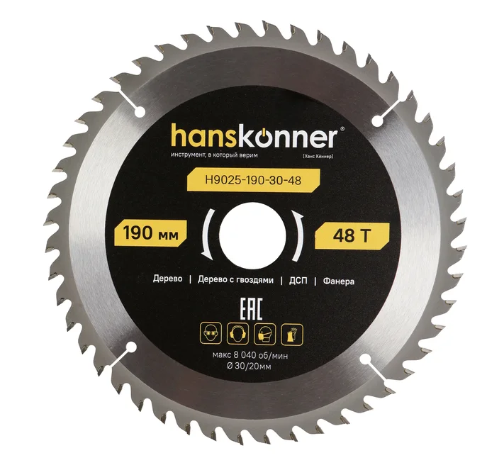 Пильный диск по дереву ArmorPiercing 190x30/20мм, 48 зубьев, Hanskonner H9025-190-30-48