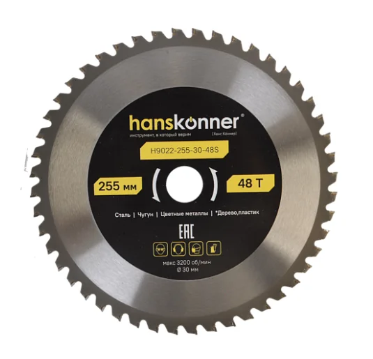 Пильный диск по СТАЛИ 255x30мм, 48 зубьев, Hanskonner H9022-255-30-48S