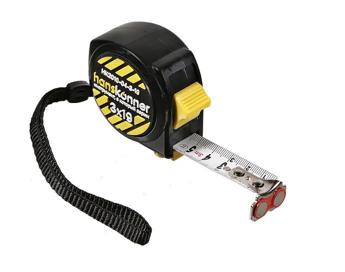 Рулетка 3x19мм, 2 стопа, компактн. корпус, 2 стопа,мощный магнит, Hanskonner HK2010-04-3-19