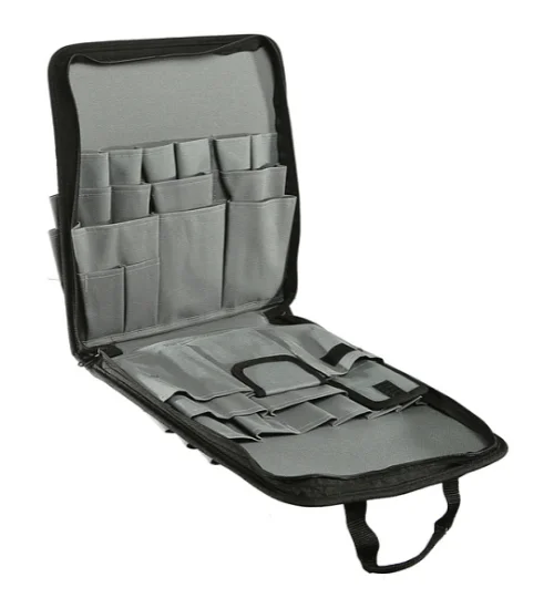 Съёмный органайзер во внутреннем отделе сумки помогает зонировать пространство для инструмента, а также сам снабжен карманами. Возможность его извлечения позволяет полностью контролировать эргономику хранения инструмента.