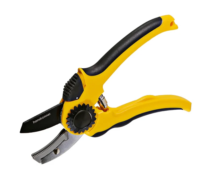 Секатор ручной, 210 мм, верхнее лезвие с тефлоновым покрытием, нижнее наковальня, Hanskonner HK3012-07-25