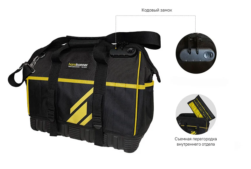 Сумка для инструментов, кодовый замок, 38 карманов, пластиковое дно, pat., Hanskonner HKTB0138