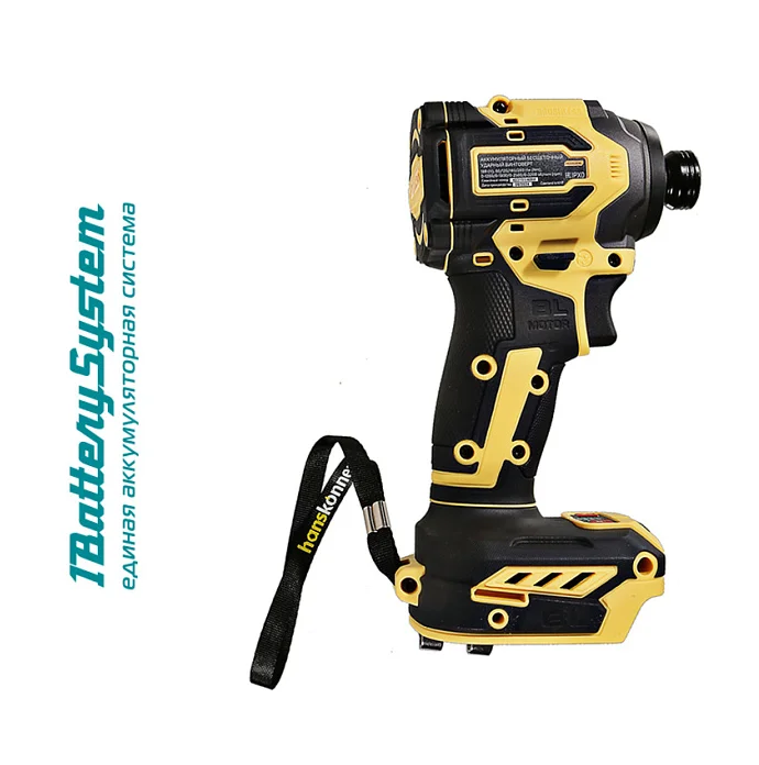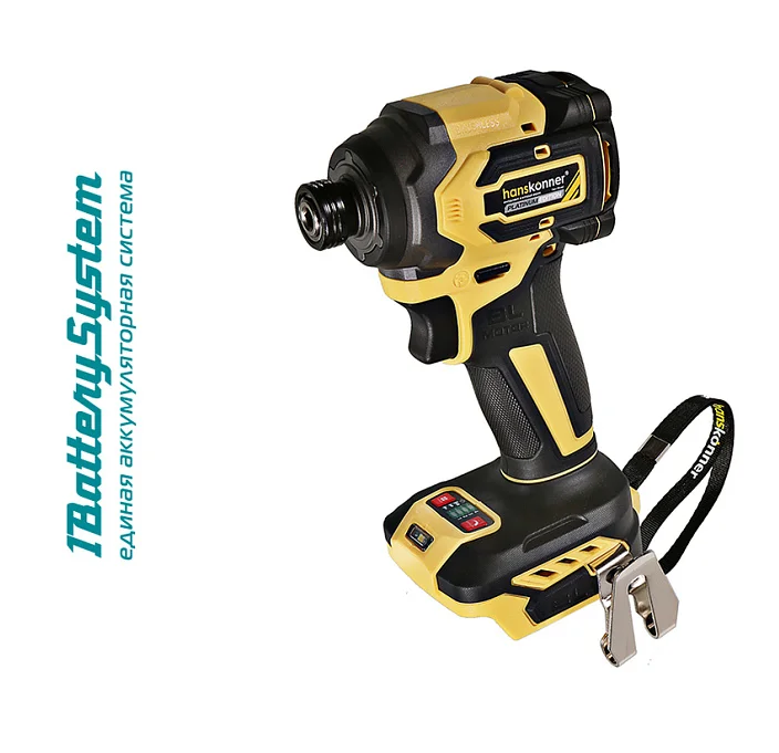 Hanskonner HCD20280BL – аккумуляторный 18 В, ударный винтоверт с типом гнезда под шестигранник 1/4 ″ – является частью системы 1BatterySystem, обеспечивающей совместимость одного и того же аккумулятора с целым рядом наименований инструмента. Модель обладает максимально сбалансированной компоновкой: небольшие размеры корпуса и рукояти позволяют эффективное использование в условиях с затрудненным доступом, а нейтральный центр тяжести, и обилие прорезиненных противоскользящих поверхностей способствуют надежному хвату, и лучшему контролю. Винтоверт оснащен 18 В бесщеточным двигателем, характеризующимся на 30% лучшей производительностью в сравнении с коллекторными аналогами. Кроме того, бесщеточный двигатель отлично справляется с кратковременными перегрузками и не склонен к перегреву. Благодаря применению мощного планетарного механизма, Hanskonner HCD20280BL уверенно демонстрирует высокие показатели крутящего момента (до 280 Н м), что позволяет работать с крепежом большой длины и диаметра. Винтоверт имеет четыре режима настройки момента затяжки: 60 Н м, 120 Н м, 180 Н м, 280 Н м – пользователь выбирает нужный, исходя из конкретного материала и крепежа. Модель оснащена функцией AutoStop, плавно останавливающей вал шпинделя сразу после откручивания крепежа. К особенностям Hanskonner HCD20280BL стоит отнести эффективную LED-подсветку рабочей зоны WorkingLight с блоком коллиматорных линз, создающих направленный симметричный луч, а также индикатор остаточного заряда аккумулятора PowerCheck. Дополнительному комфорту использования способствуют специальная зацепная скоба крепления на пояс.