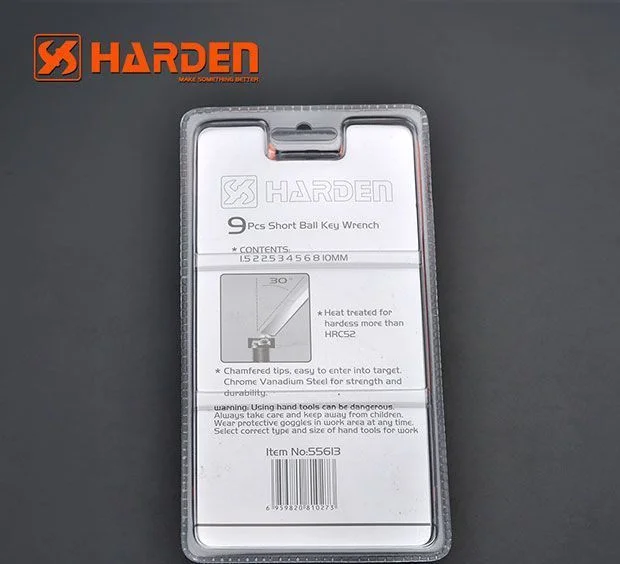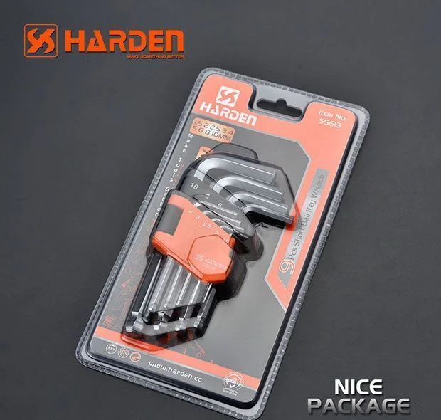 Набор коротких шестигранных ключей с плавающей головкой типа Г HARDEN 9шт. 540603