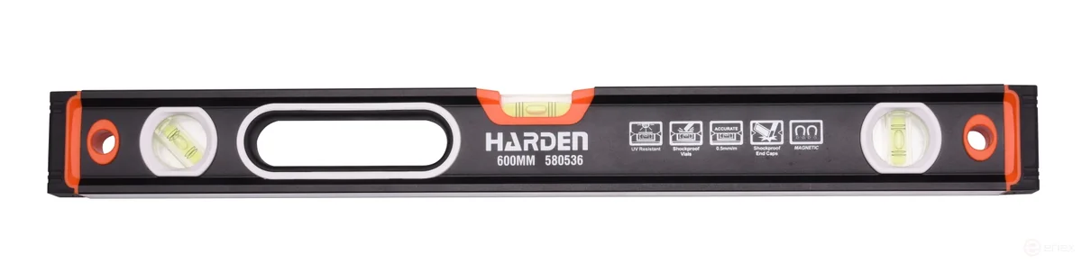 Уровень профессиональный алюминиевый с магнитом 600 мм HARDEN (артикул 580536) предназначен для длительного профессионального использования в тяжёлых условиях.