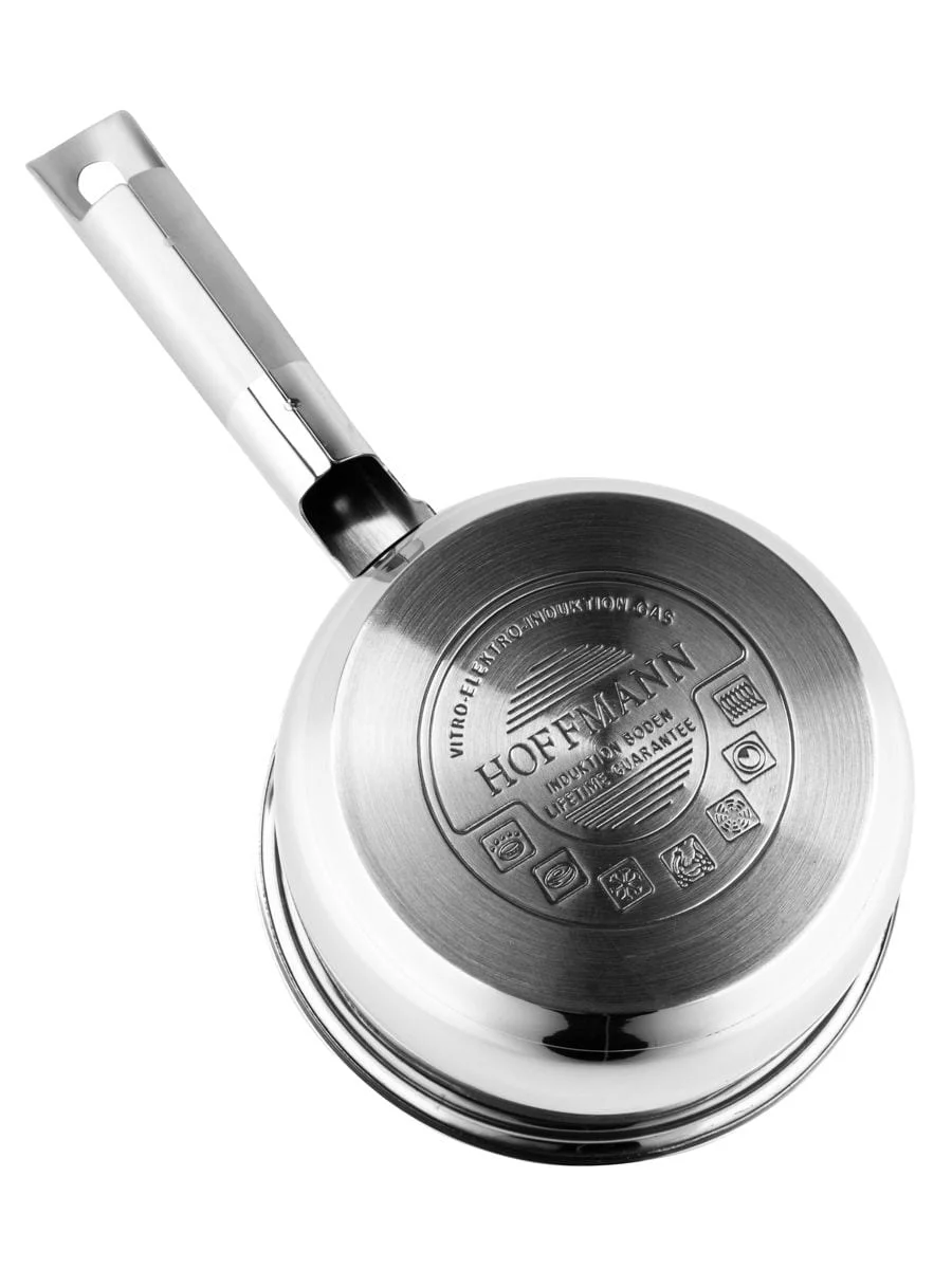 Ковши от торговой марки Hoffmann созданы из материалов высочайшего качества. Глянцевая и матовая полировки сочетаются друг с другом и придают им роскошный внешний вид. Благодаря специальной запатентованной технологии, капсульного дна, ковши нагреваются равномерно, распределяя тепло по стенкам посуды. При готовке в посуде такого типа, практически не нужно масло, а благодаря капсульному дну, помешивать еду можно реже, т.к. риск пригорания пищи сильно уменьшается.