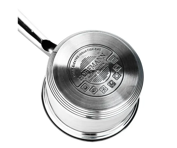 Ковши от торговой марки Hoffmann созданы из материалов высочайшего качества. Глянцевая и матовая полировки сочетаются друг с другом и придают им роскошный внешний вид. Благодаря специальной запатентованной технологии, капсульного дна, ковши нагреваются равномерно, распределяя тепло по стенкам посуды. При готовке в посуде такого типа, практически не нужно масло, а благодаря капсульному дну, помешивать еду можно реже, т.к. риск пригорания пищи сильно уменьшается.
