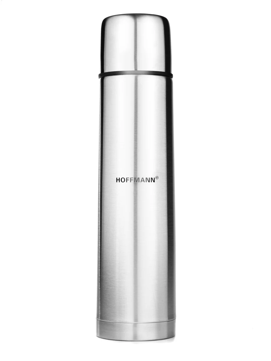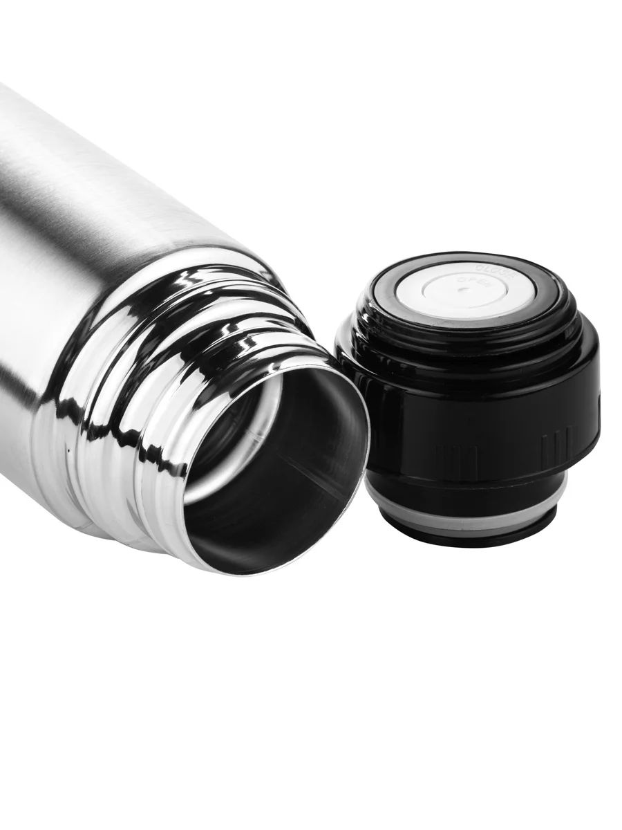 Термос из нержавеющей стали, 1000мл, внутренняя колба обладает двойными стенками с вакуумной изоляцией между стенками, имеется крышка-чашка и пробка с кнопкой,которая позволяет наливать содержимое после нажатия, избегая отвинчивания пробки, стальной