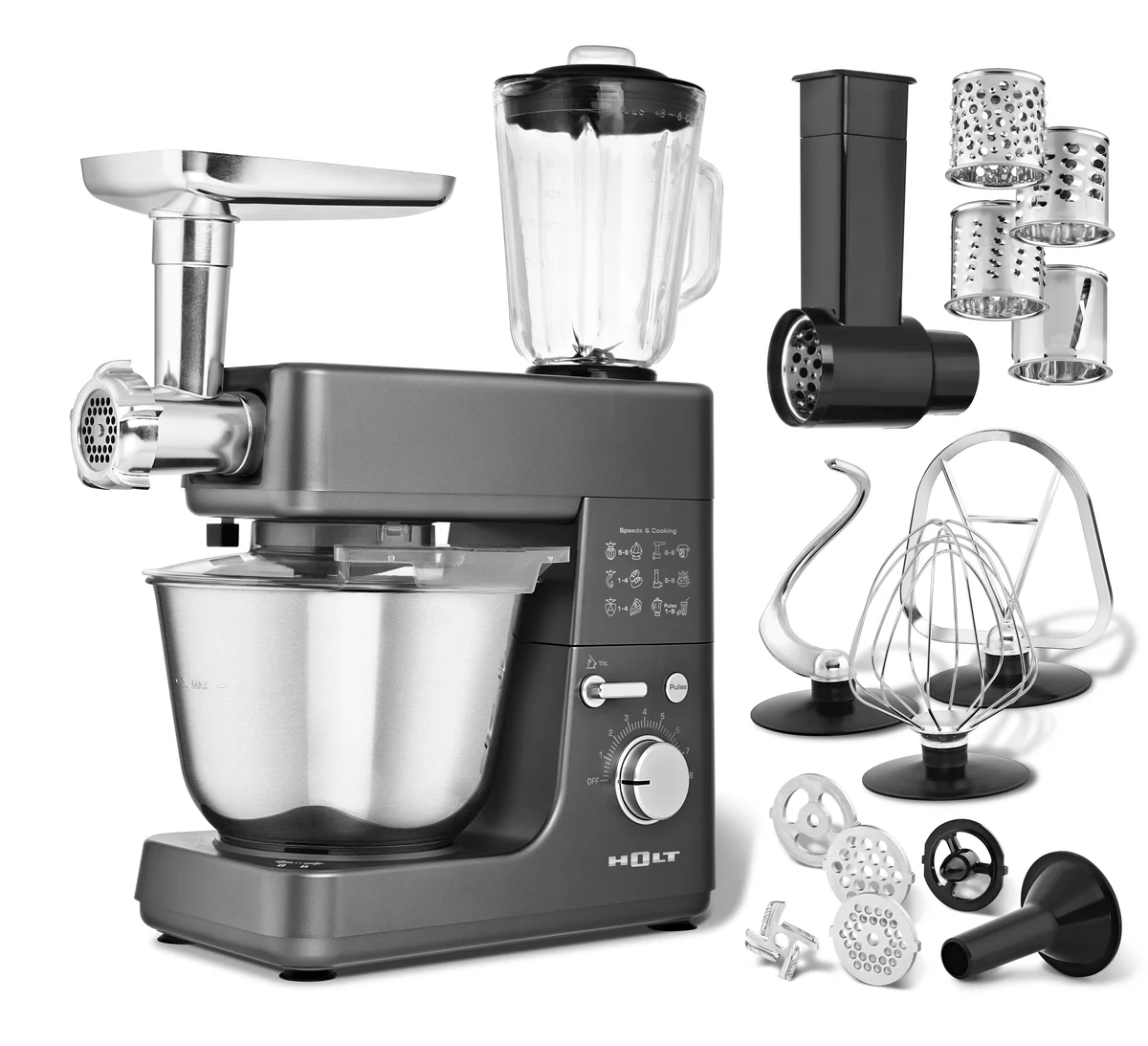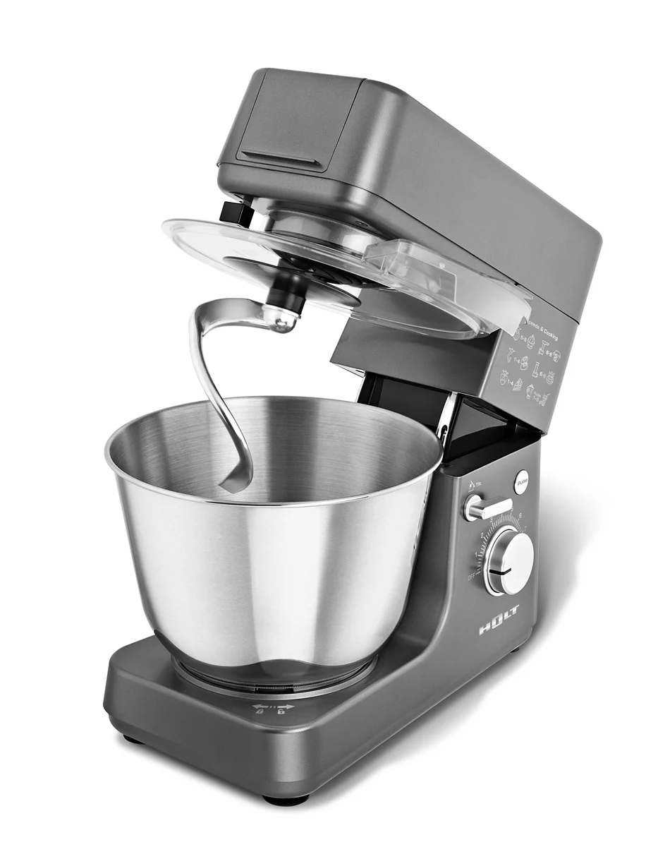 Миксер с 3 насадками и чашей из нержавеющей стали с прозрачной пластиковой крышкой