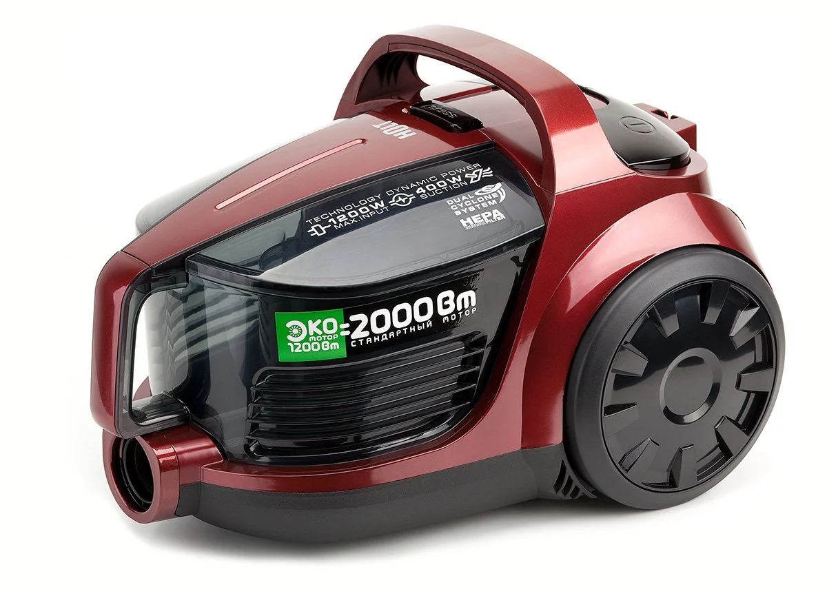 - Пылесос оснащен новым высокоэффективным ЭКО мотором, потребляющим 1200 Вт при максимальной нагрузке и выдающим 400 Вт всасываемой мощности, что соответствует 2000 Вт обычного мотора.