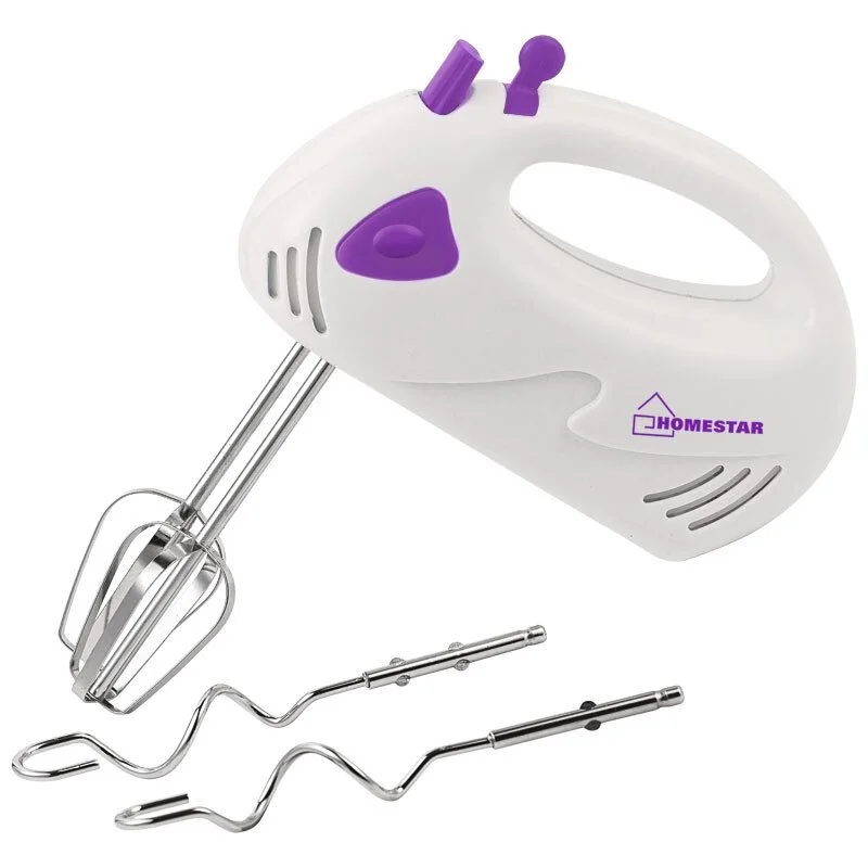 Лёгкая и компактная модель Подходит для смешивания и взбивания 7 скоростных режимов Венчики для взбивания Насадки для замешивания теста Мощность 150 Вт
