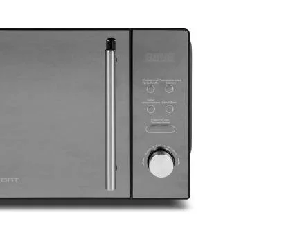 Популярность среди пользователей Onliner.by снискала модель со специальной зеркальной поверхностью и режимом работы «Гриль» 20MW700-1479BKB. Первое, на что обращают внимание покупатели – стильный дизайн. Корпус черный зеркальный. Микроволновка прекрасно размораживает, разогревает и готовит различные продукты, а функция гриля позволяет готовить даже сложные мясные блюда. Тип гриля в данной модели тэновый — это трубка с нагревательным элементом, расположенная в верхней части камеры. Объем эмалированной камеры стандартный – 20 л. По окончании приготовления срабатывает звуковой сигнал.