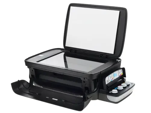 HP Ink Tank 315 обладает внушительной скоростью печати: в минуту из него выходит 16 цветных или 19 черно-белых страниц. Сканирование и копирование производится только со стекла, без автоподачи. Для того, чтобы скопировать, например, две страницы паспорта на один лист формата А4, удобно воспользоваться ручной подачей бумаги. Интересный дизайн МФУ поможет ему вписаться в интерьер жилого помещения. Принтер комплектуется двумя бутылочками с черными чернилами HP GT51XXL, что значительно отложит поход за покупкой расходных материалов.