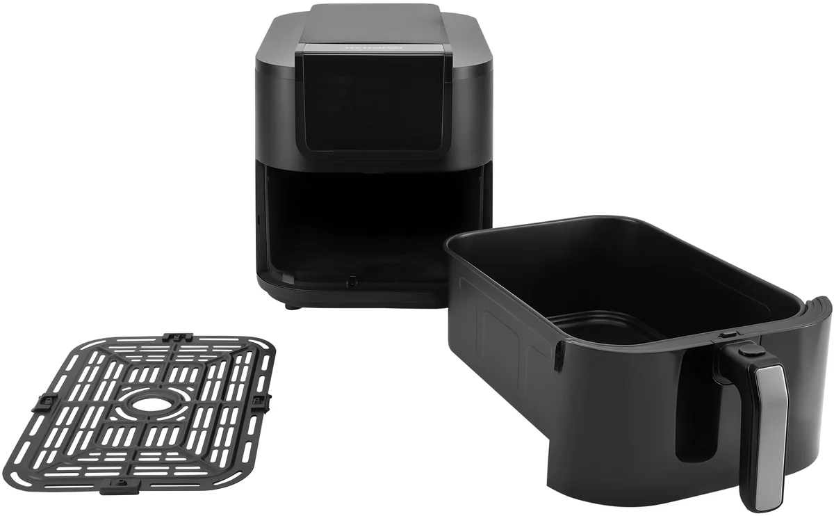 Сенсор автоматического определения количества продуктов, вы загружаете, аэрогриль определяет и подстраивает время и температуру готовки в зависимости от количества. Удлиненная форма, для сохранения большого объема корзины при компактном размещении