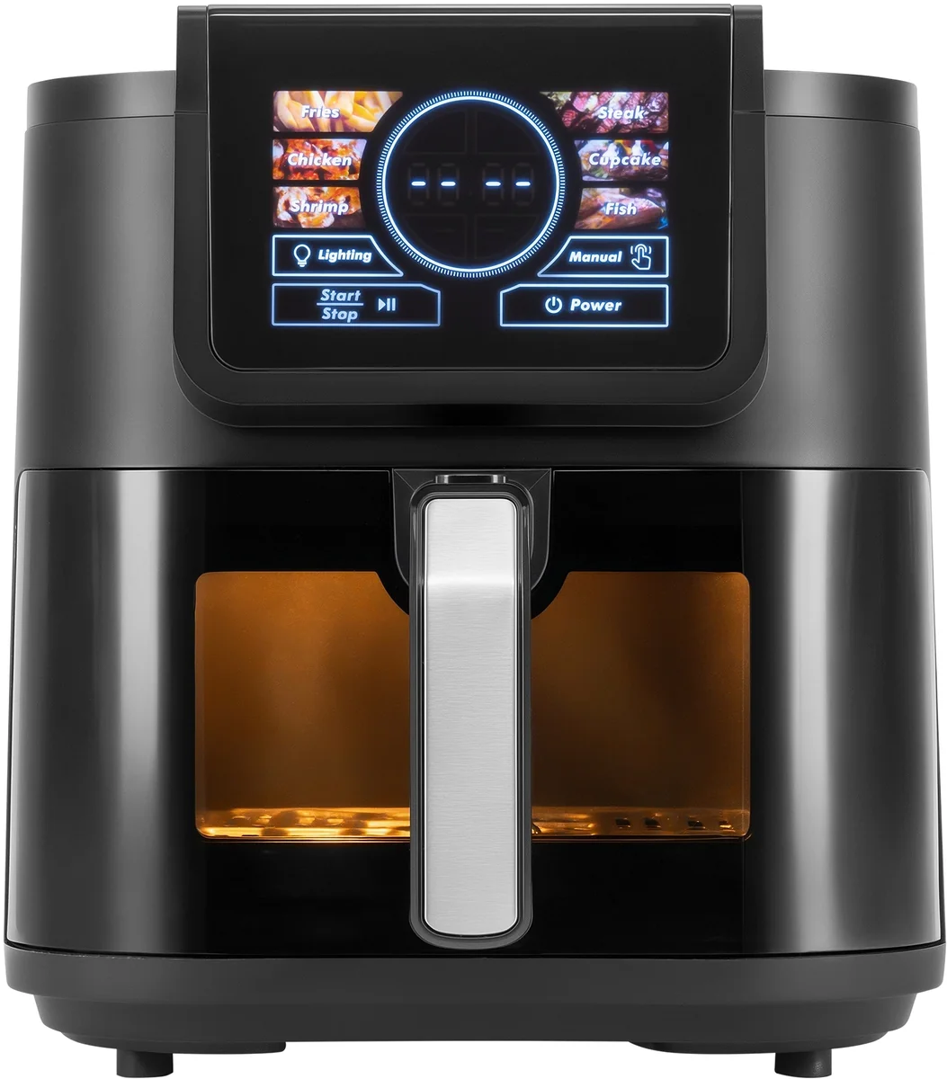 Аэрогриль позволяет готовить с минимальным количеством масла или совсем без него. Блюда будут более полезными, с хрустящей корочкой снаружи и нежная внутри. Окошко и подсветка для визуального контроля без открытия камеры.