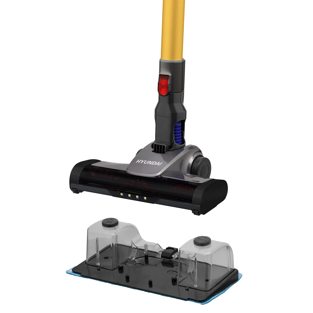Съемные резервуары для воды позволяют использовать пылесос для мытья пола. Вода постепенно подается на фибра-ткань установленную снизу прибора. Ткань для мытья пола входит в комплект.