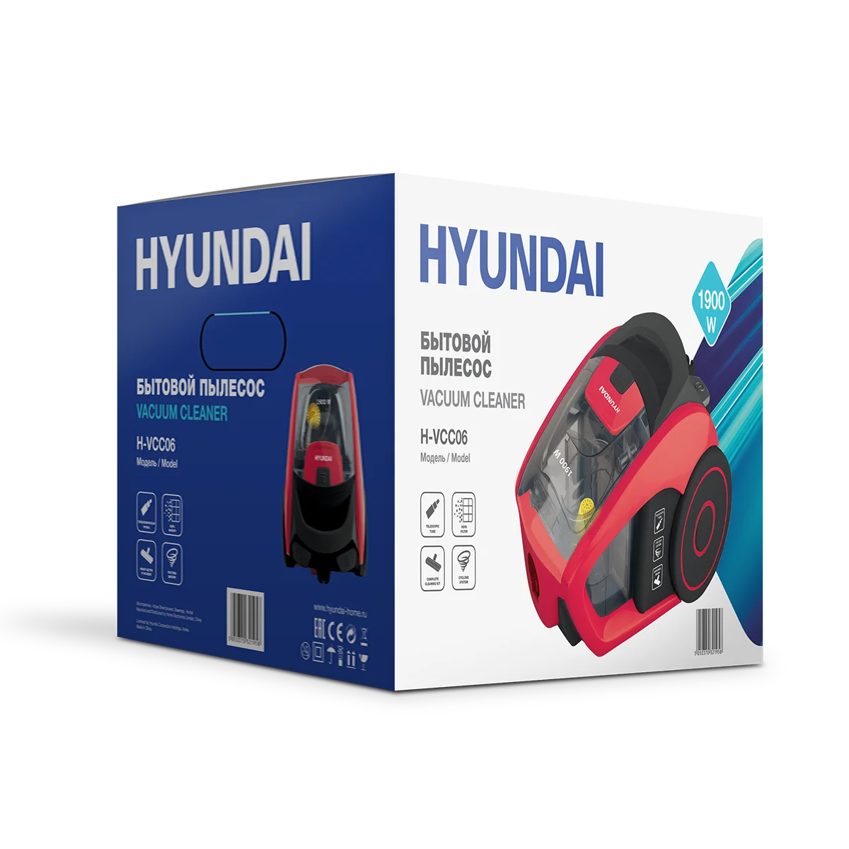 Пылесос H-VCC06 в ярком исполнении, мощностью 1900 Вт станет незаменимым помощником в любом доме.