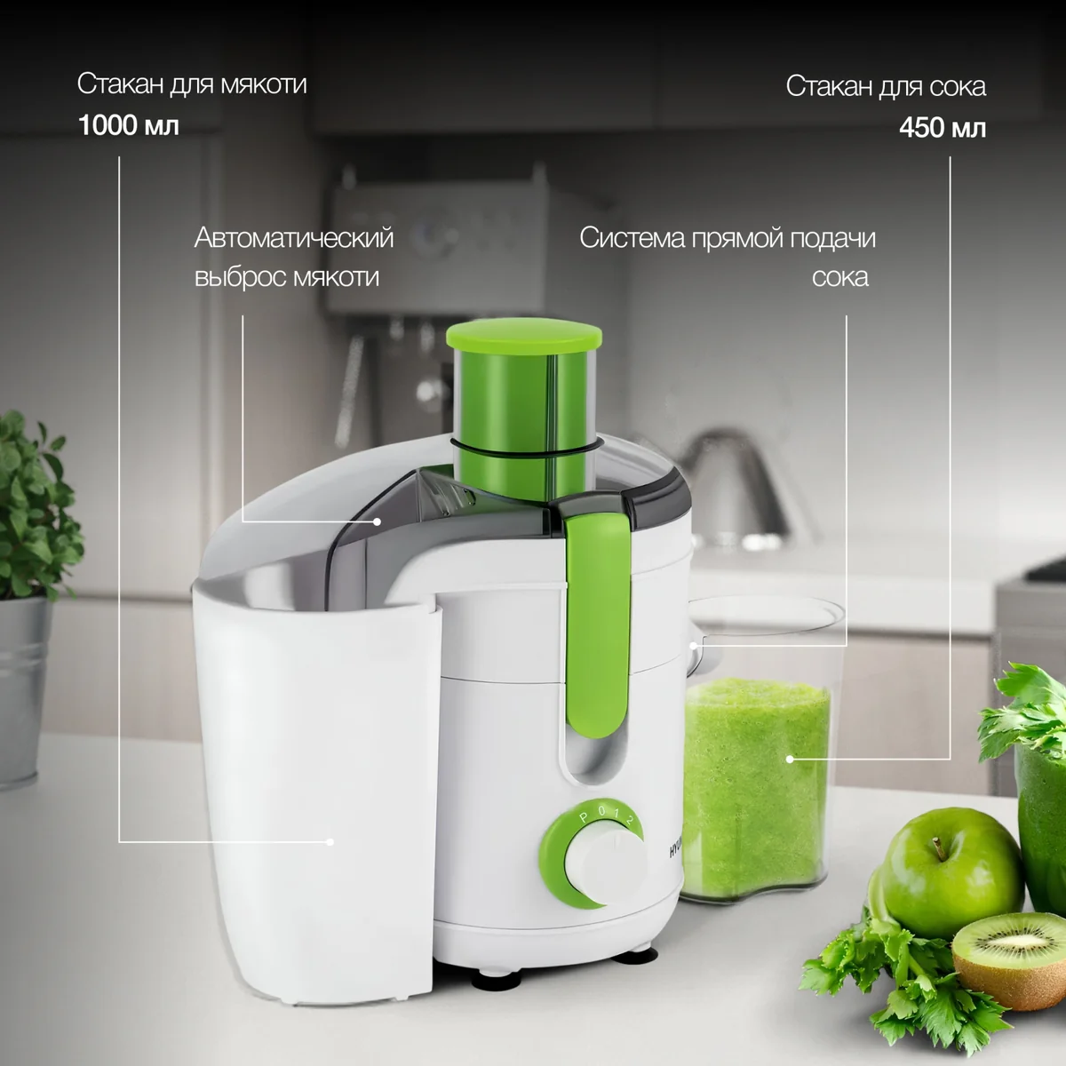 Соковыжималка центробежная Hyundai HY-JE1615 500Вт рез.сок.:400мл. белый/зеленый