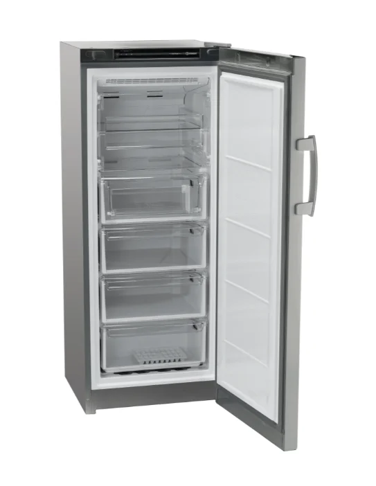 Эта морозильная камера обладает функцией No Frost, что облегчает её обслуживание, и способна сохранять холод до 15 часов при отключении питания. В ней предусмотрено 4 ящика и 2 полки для удобного хранения продуктов. Мощность замораживания составляет 10 кг в сутки, что делает её подходящей для быстрой заморозки большого количества продуктов.