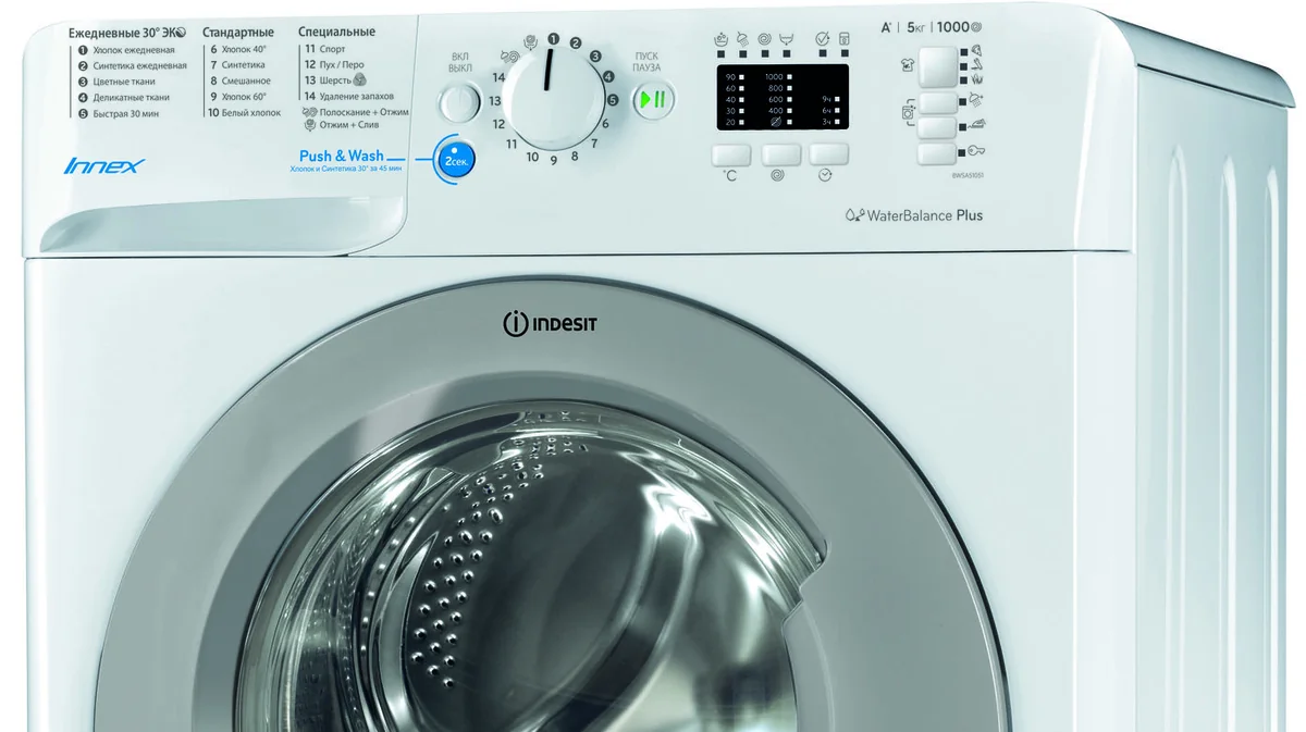 Среди специальных функций модели — легкий запуск ежедневного цикла одним нажатием кнопки Push&Go* и умный датчик Water Balance Plus**, с помощью которого программа самостоятельно рассчитывает необходимый расход воды с учетом уровня загрузки для дополнительной экономии ресурсов.