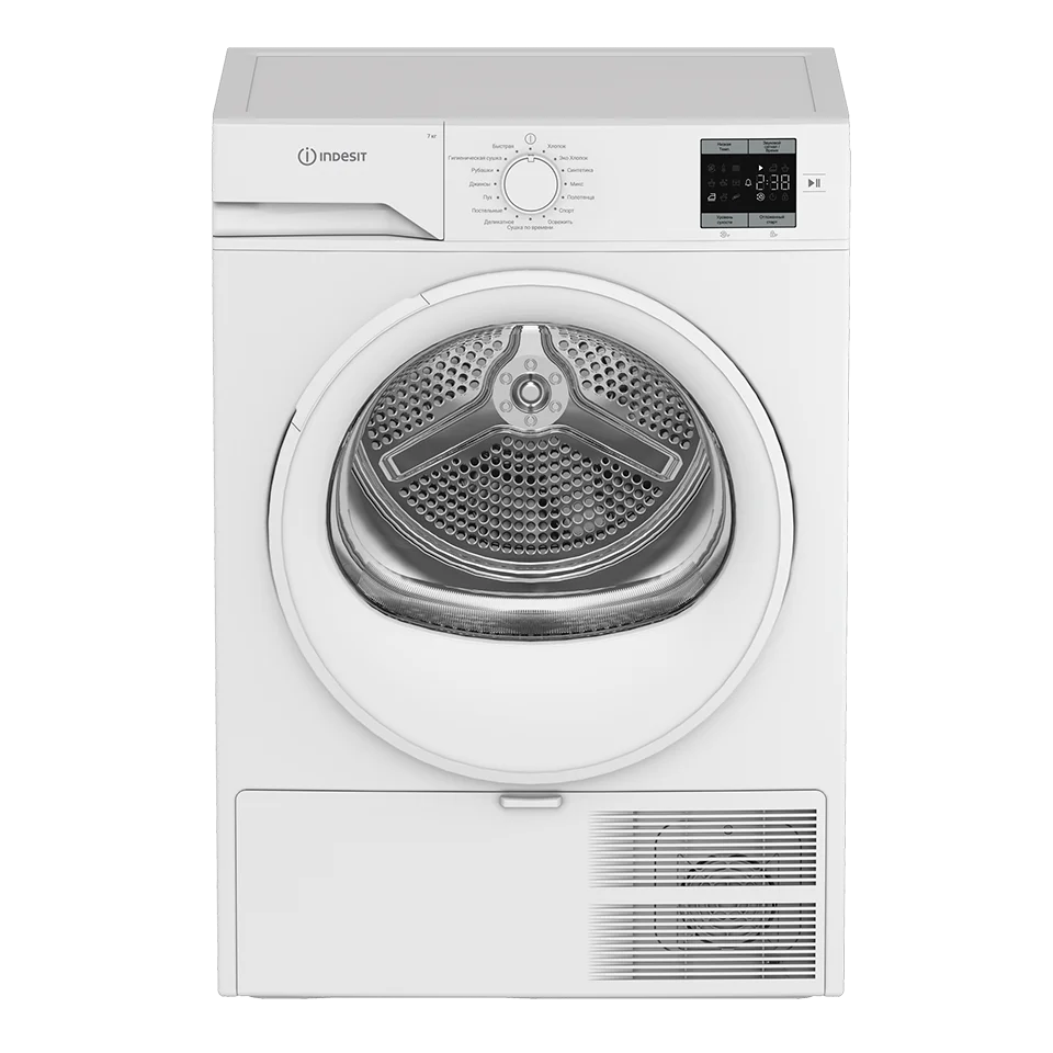 Сушильная машина Indesit IAS3725 белого цвета — конденсационная модель с тепловым насосом.