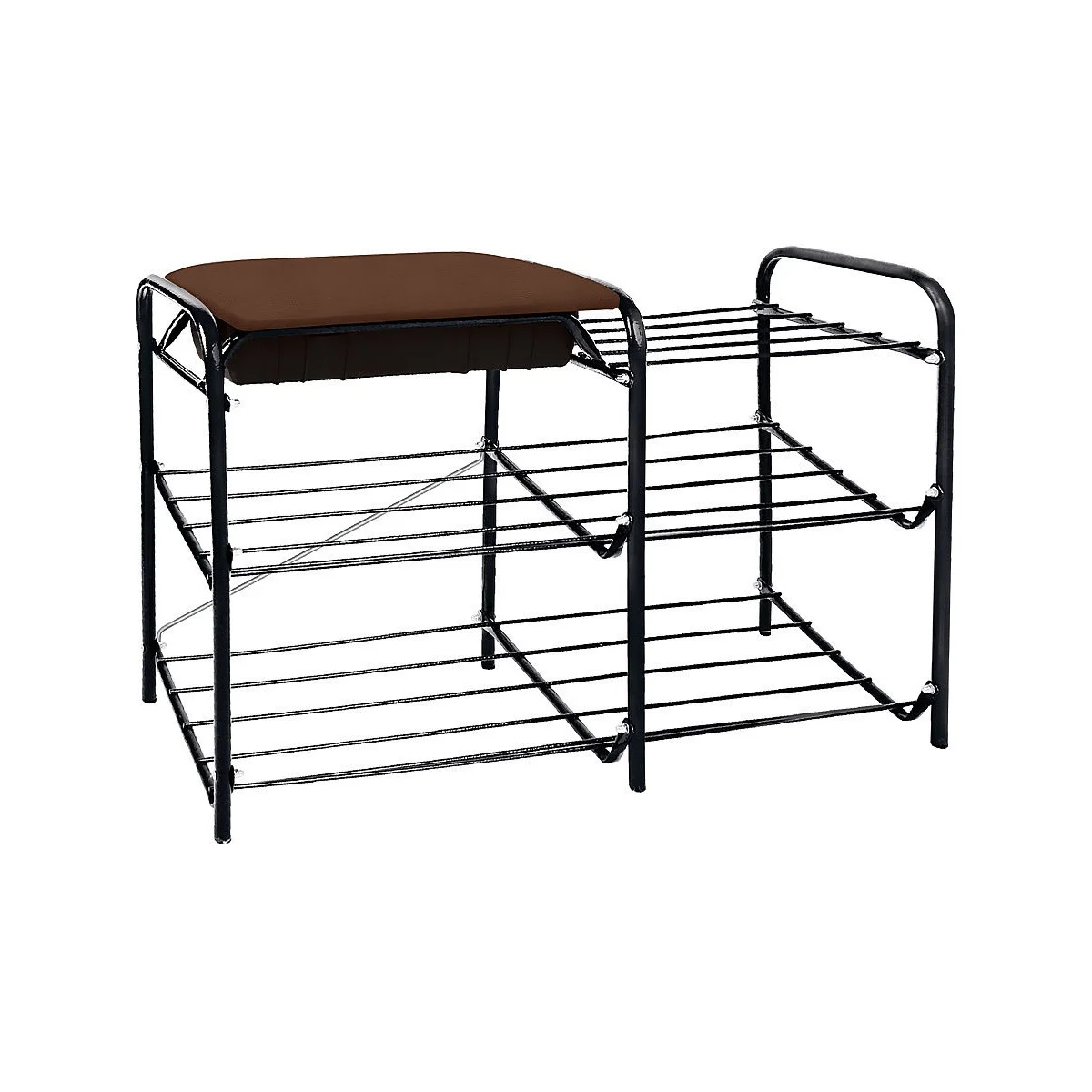 Этажерка для обуви InHome ЭТИ4/Ч — металлическая обувница с мягким сиденьем и ящиком для мелочей.