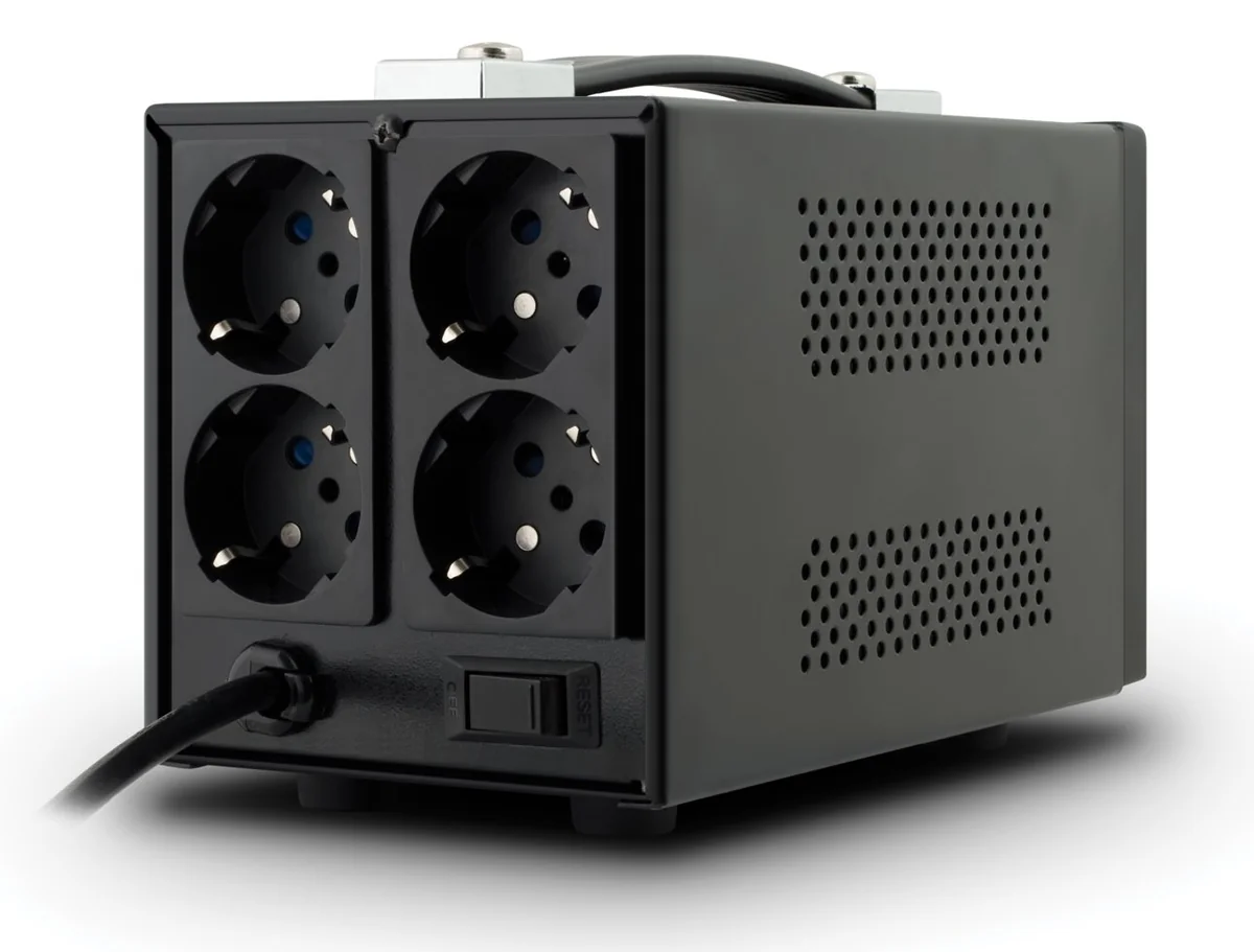 Входное напряжение в нестабильной сети может варьироваться от 163 до 253 вольт, то есть ставка сделана именно на низкое напряжение. При это на выходе вы получаете оптимальные 220 В/50 Гц с 10-процентной стабильностью. Для подключения оборудования предусмотрено четыре розетки в формате CEE 7, есть автоматический предохранитель и пассивная система охлаждения. IPPON AVR-2000 – это стильное эффективное решение для защиты оборудования.
