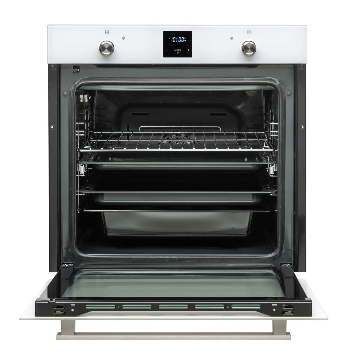 - Комплектация: 3 противня (стандартный, глубокий, жаровочный лист) и хромированная решётка.