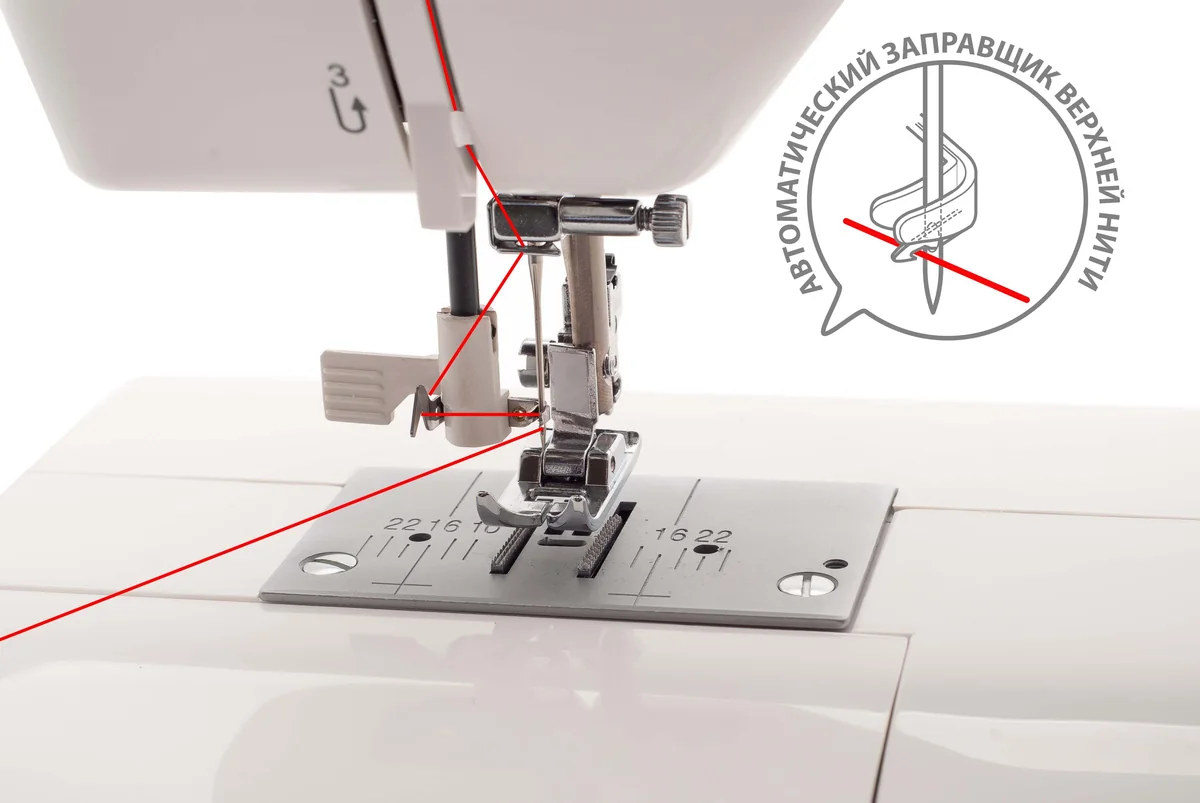 Эта машинка станет вашим настольным прибором благодаря своим размерам, удобству использования, набору функций, сдержанному дизайну. 11 видов операций, комфортная подсветка, автоматический нитевдеватель - это еще не полный список приятных составляющих для комфортного процесса шитья. Отличный выбор для умельцев, которые любят ценить время и свободное место рабочего пространства.