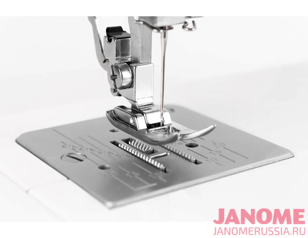 Компактная и простая в управлении электромеханическая швейная машина с вертикальным качающимся челноком. Машина хорошо работает с большинством типов тканей. Набор строчек машины включает в себя прямые строчки, зигзаги и петлю, выполняемую полуавтоматически за четыре приема. Для работы с узкими изделиями и изделиями цилиндрической формы предусмотрена съемная рукавная платформа.