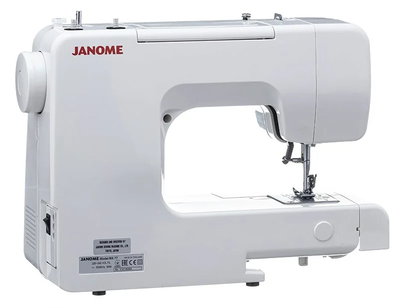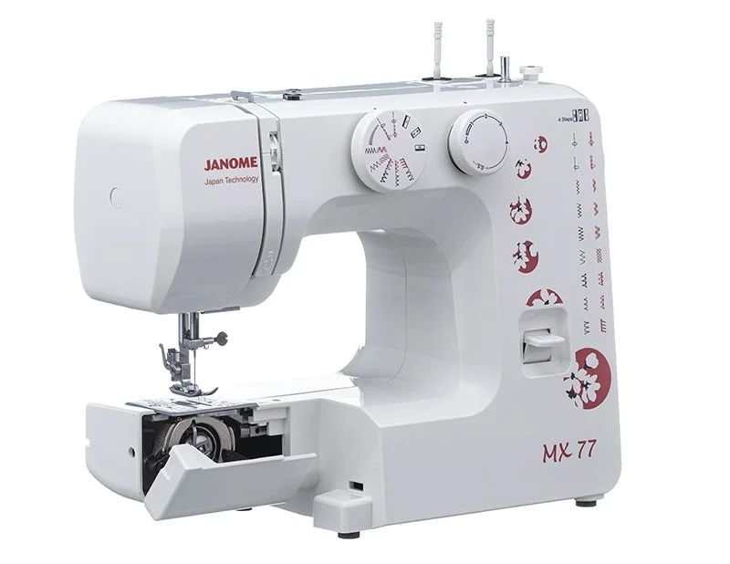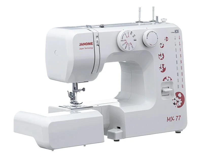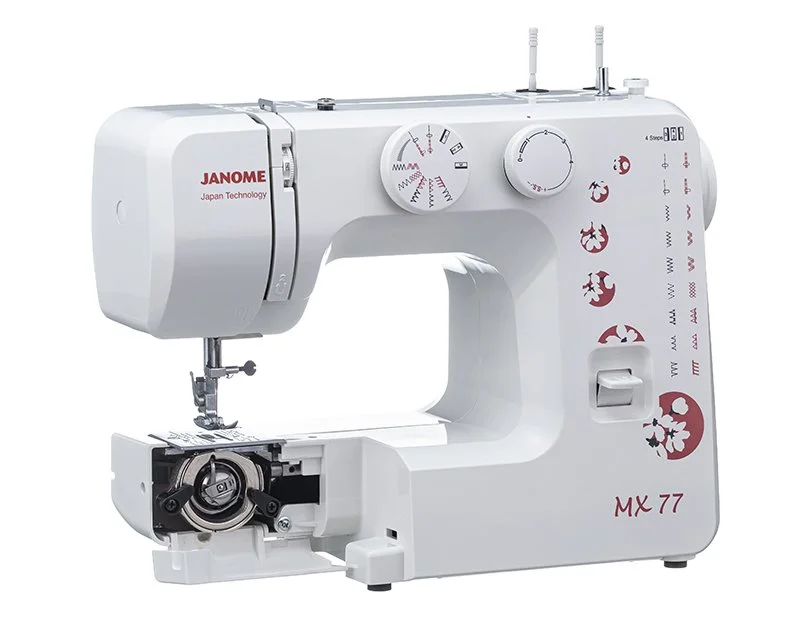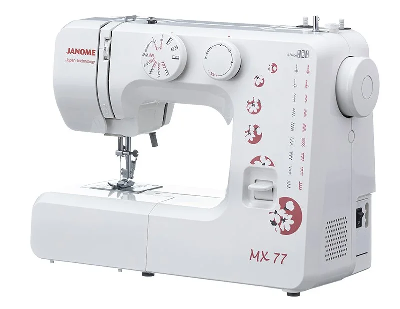 Janome MX 77 — это простое воплощение швейных задач за 15 строчек. Электромеханическая машинка строчит по прямой, создаёт зигзаг, оверлочной строчкой приводит в порядок края и срезы изделий. Регуляторы ширины зигзага и длины строчки располагаются на уровне глаз на передней панели. Ими легко управлять, поворачивая ручки на нужную программу, согласно изображению. Варианты строчек нанесены справа. Дизайн Janome MX 77 воздушный, с яркими акцентами настраивает на гармоничную работу. Вас ничего не будет отвлекать ведь машина способна справиться с любыми типами ткани, например, тяжёлыми, плотными как джинса или лёгкими как шифон. Дополнительный подъём лапки способствует слаженной работе. Кнопка реверс создать закрепки в конце шитья или заштопает нужные участки. Janome MX 77 надёжная выручай— машина для начинающих мастеров и для домашних швейных работ.