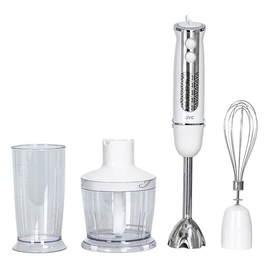 Многофункциональный погружной блендер JVC JK-HB50365 c измельчителем и 2 насадками легко справится с обработкой мягких и твердых продуктов и даже подойдет для крошки льда. Модель оснащена 5 cкоростями c плавной регулировкой и режимом Турбо. Корпус выполнен из высококачественного ABS пластика, устойчивого к влаге и появлению царапин. Материал погружной части съемных насадок и ножей измельчителя - качественная нержавеющая сталь. Надежный, стильный и качественный блендер JVC станет незаменимым помощником на вашей кухне и отличным подарком близким людям.
