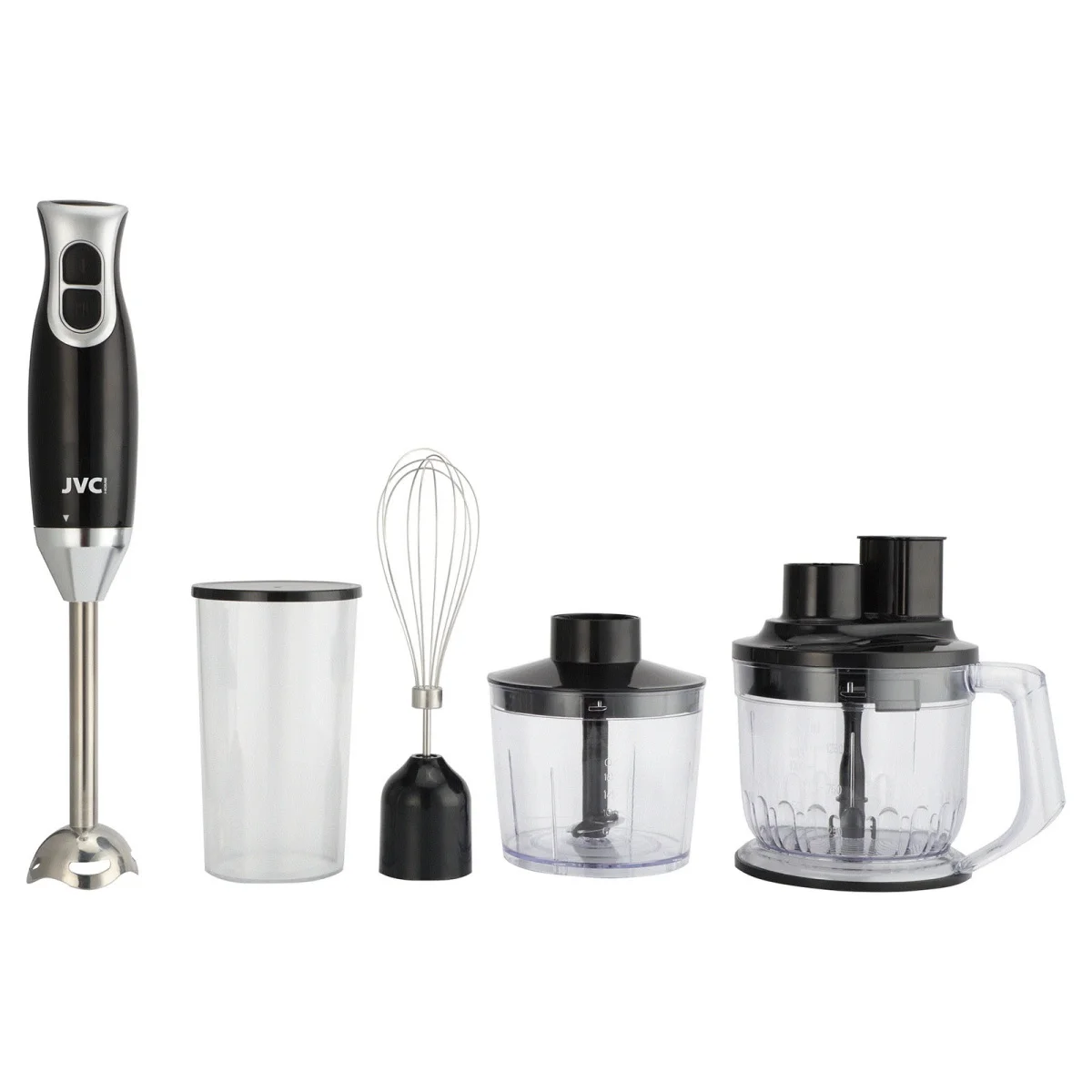 Полная комплектация - блендер, насадки, мерный стакан с крышкой, измельчитель, чаша для измельчения, нарезки и терки, гарантийный талон, инструкция на русском языке