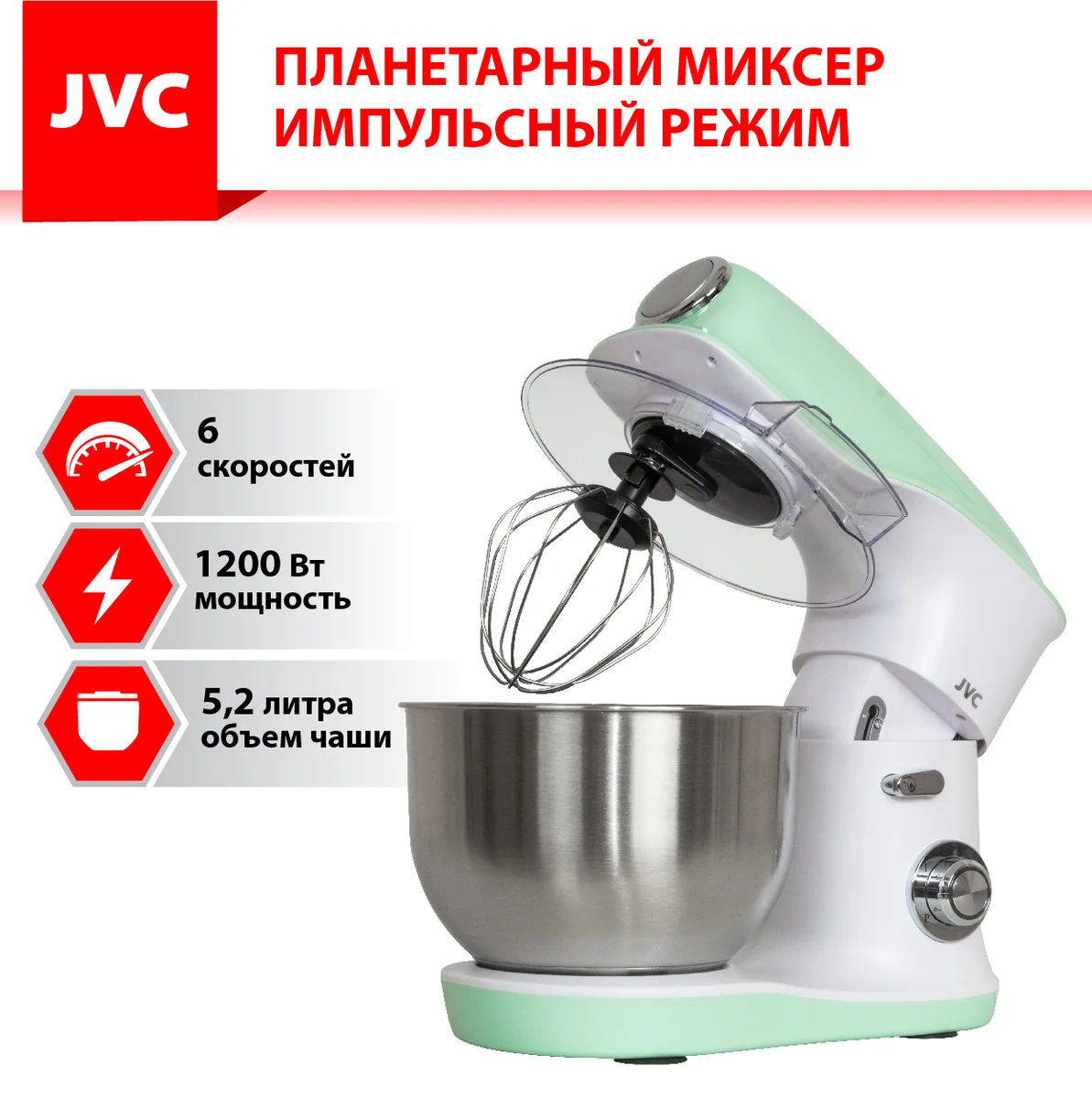 Планетарный миксер JVC JK-MX510 5,2л mint 1200Вт