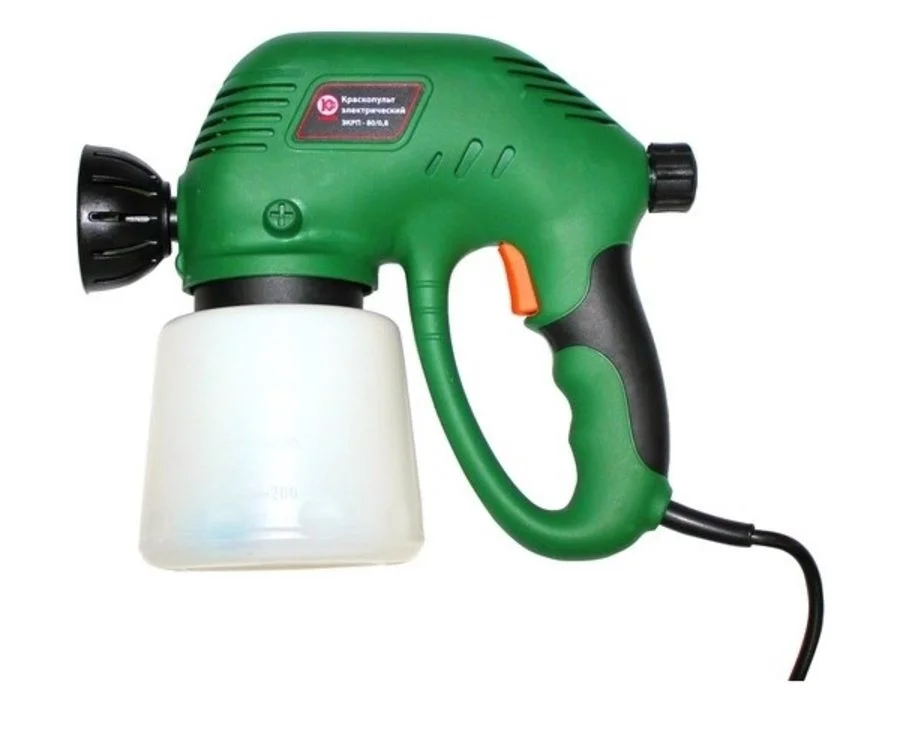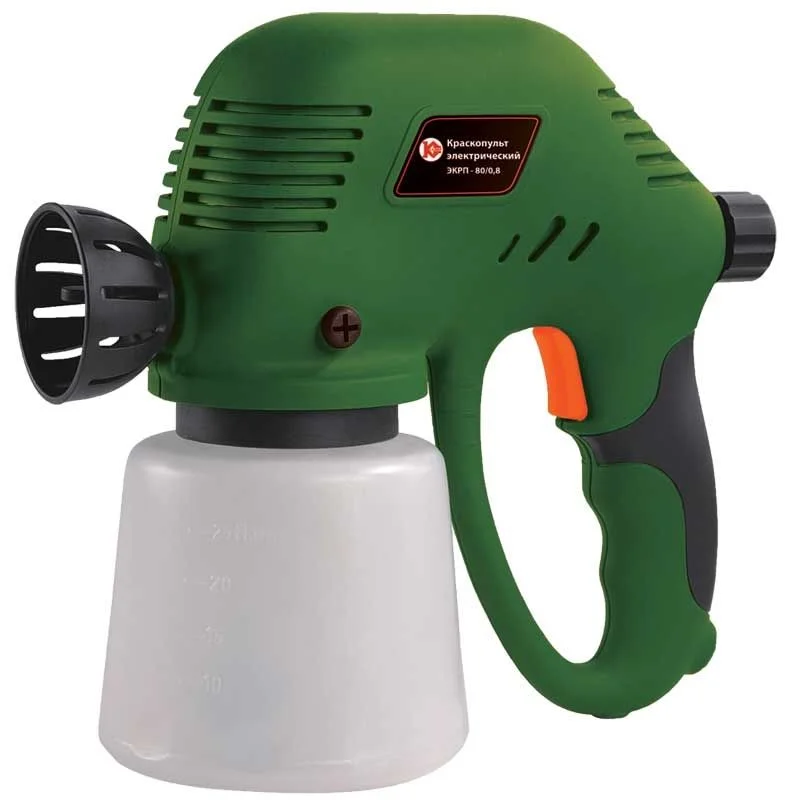 Электрический краскопульт Калибр ЭКРП-80/0,8 00000035887 предназначен для равномерного нанесения водно-известковых и лакокрасочных смесей на различные поверхности. Укомплектован пластиковым бачком объемом 800 мл и распылительным соплом диаметром 0.8 мм. Вязкость рабочей смеси не должна превышать 30 DIN/сек.