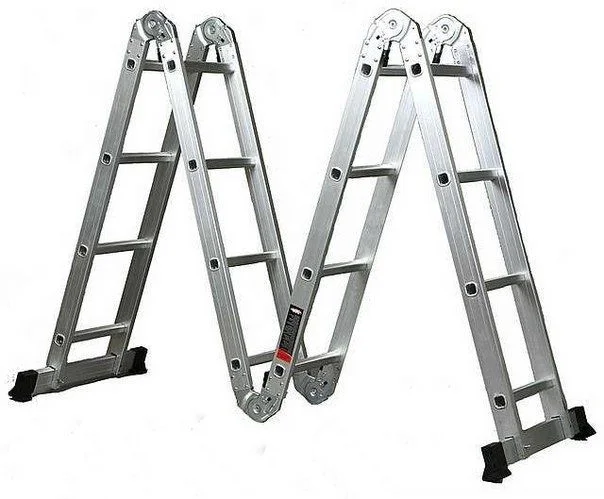 - Шарнирная лестница может складываться в 4 раза, что придает ей очень компактные размеры.