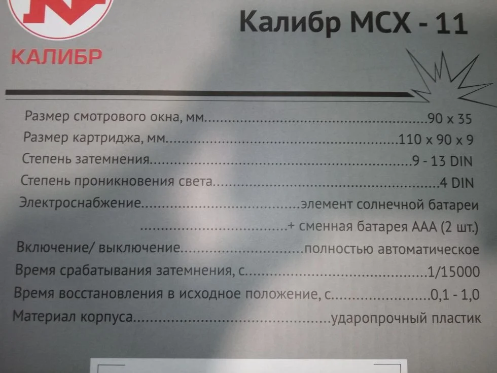 Время срабатывания затемнения - 1/10000 с.,