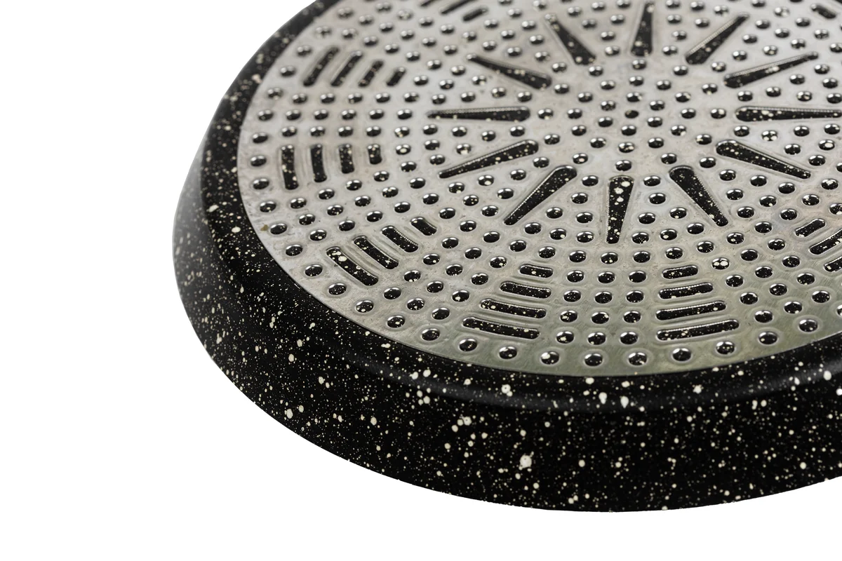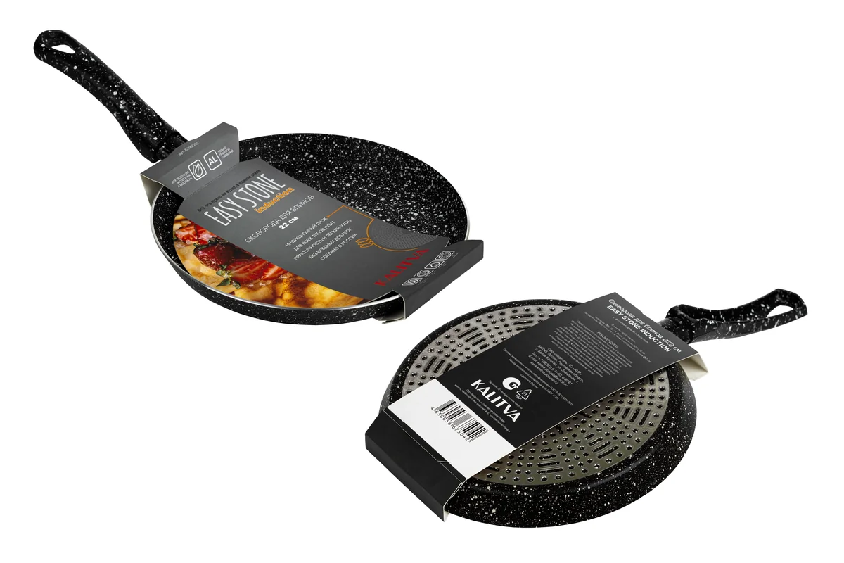 Удобная и практичная сковорода для блинов линейки Easy Stone Induction бренда Kalitva предназначены для жарки аппетитных румяных блинчиков. Диаметр 22 см. Качественное антипригарное покрытие внутри и декоративное покрытие снаружи черного цвета с эффектом камня, прочный корпус из штампованного пищевого алюминия, экологичность, безопасность и удобство использования – в этой модели блинницы продуманы все детали, чтобы ее использованием было долгим и комфортным. А встроенный в корпус диск из нержавеющей стали позволяет использовать блинницу также и на индукионной плите.