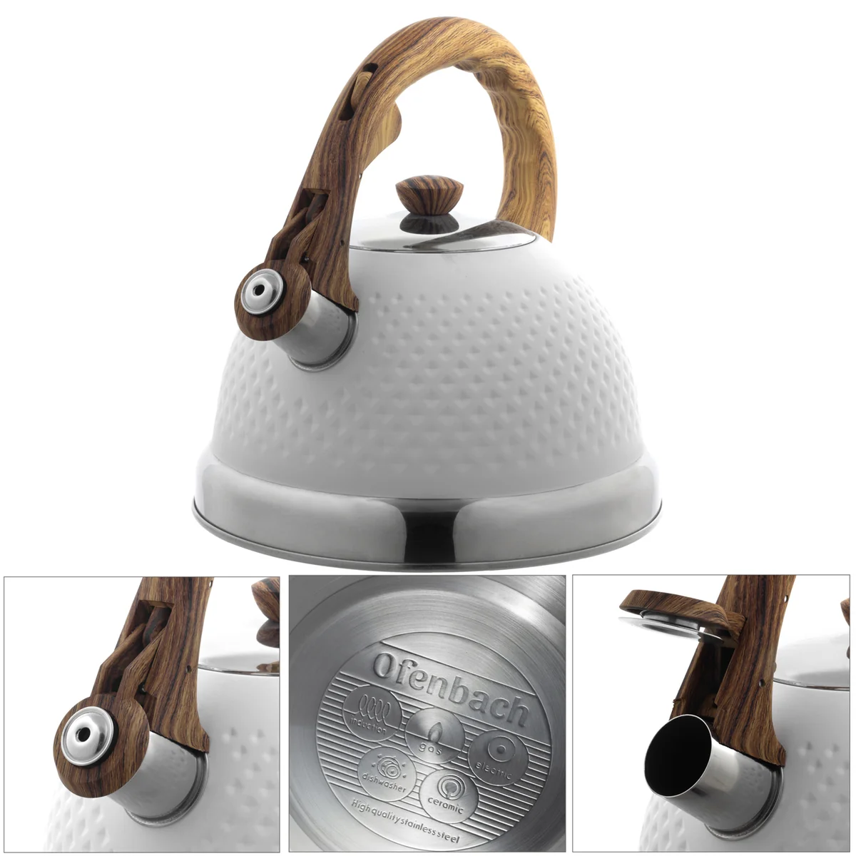 Чайник 2,7 л. из нержавеющей стали со свистком Ofenbach NB 100305 и ручкой "soft touch" под дерево white