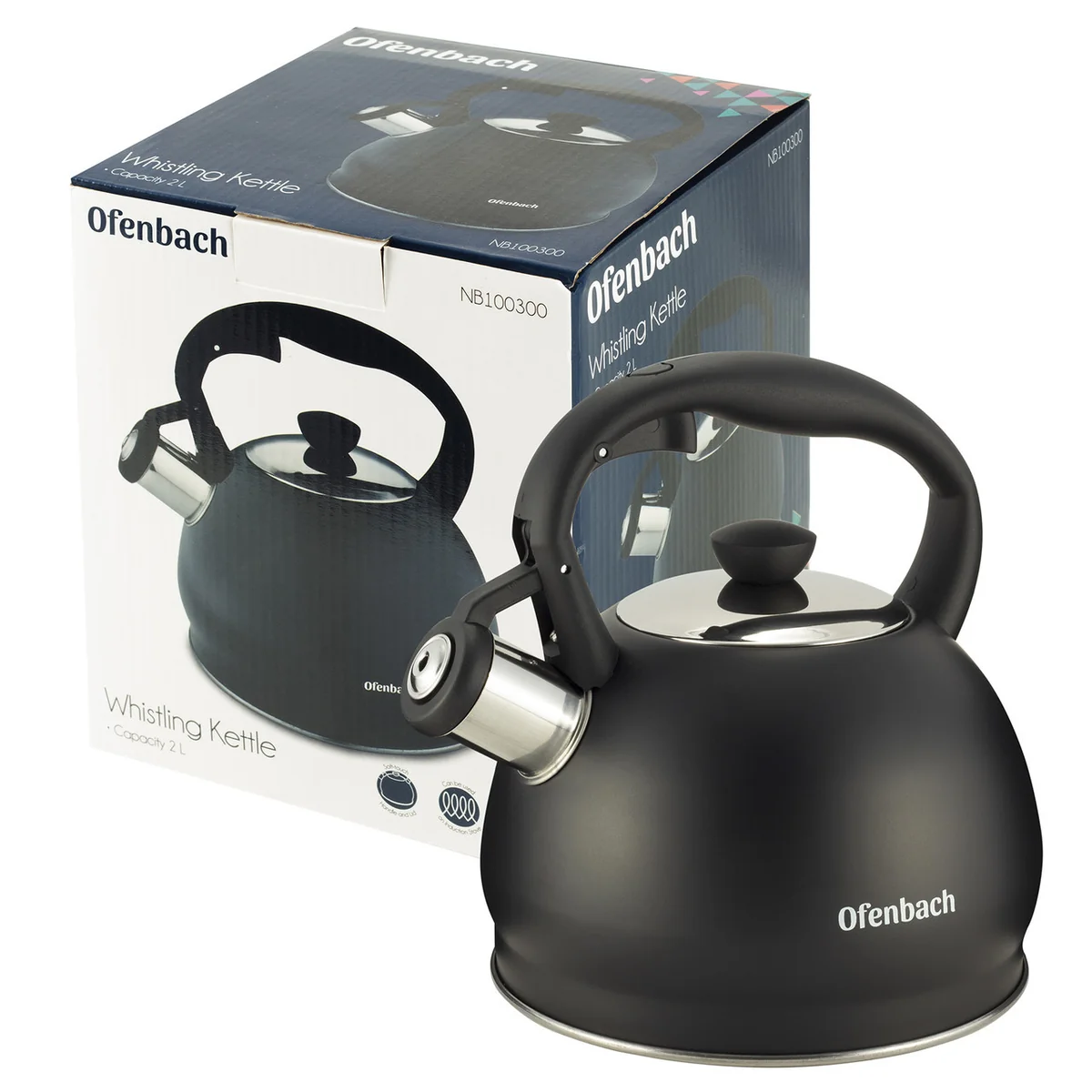 Чайник 2 л. из нержавеющей стали со свистком Ofenbach NB-100300 (черный матовый)