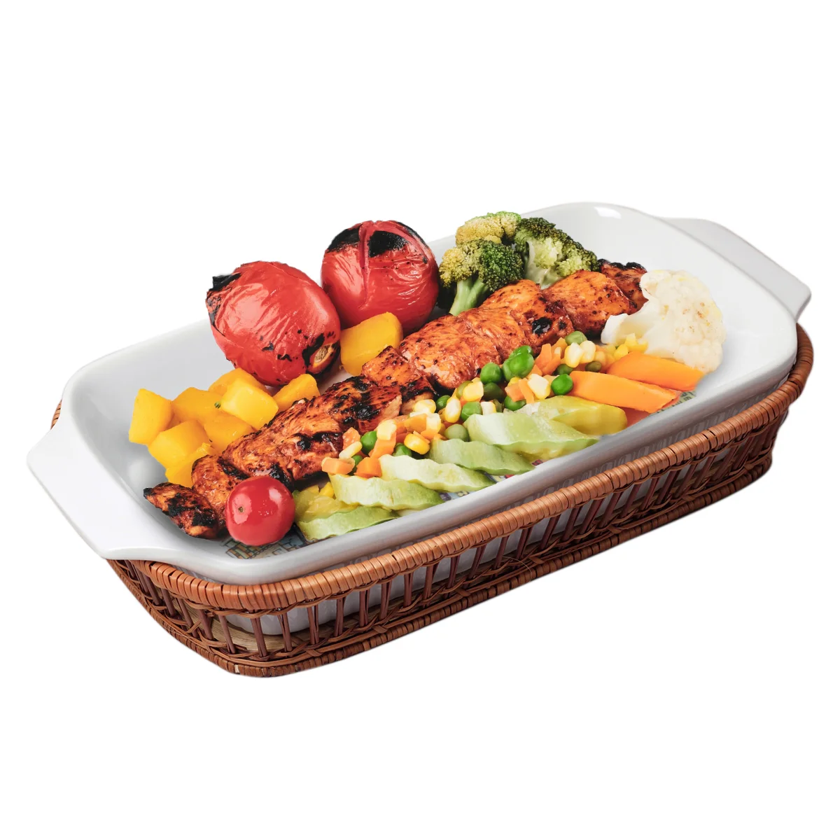 Форма керамическая для запекания 1,5 л. прямоугольная Kamille KM-6304 (35,5х18х5 см) с ротанговой корзинкой