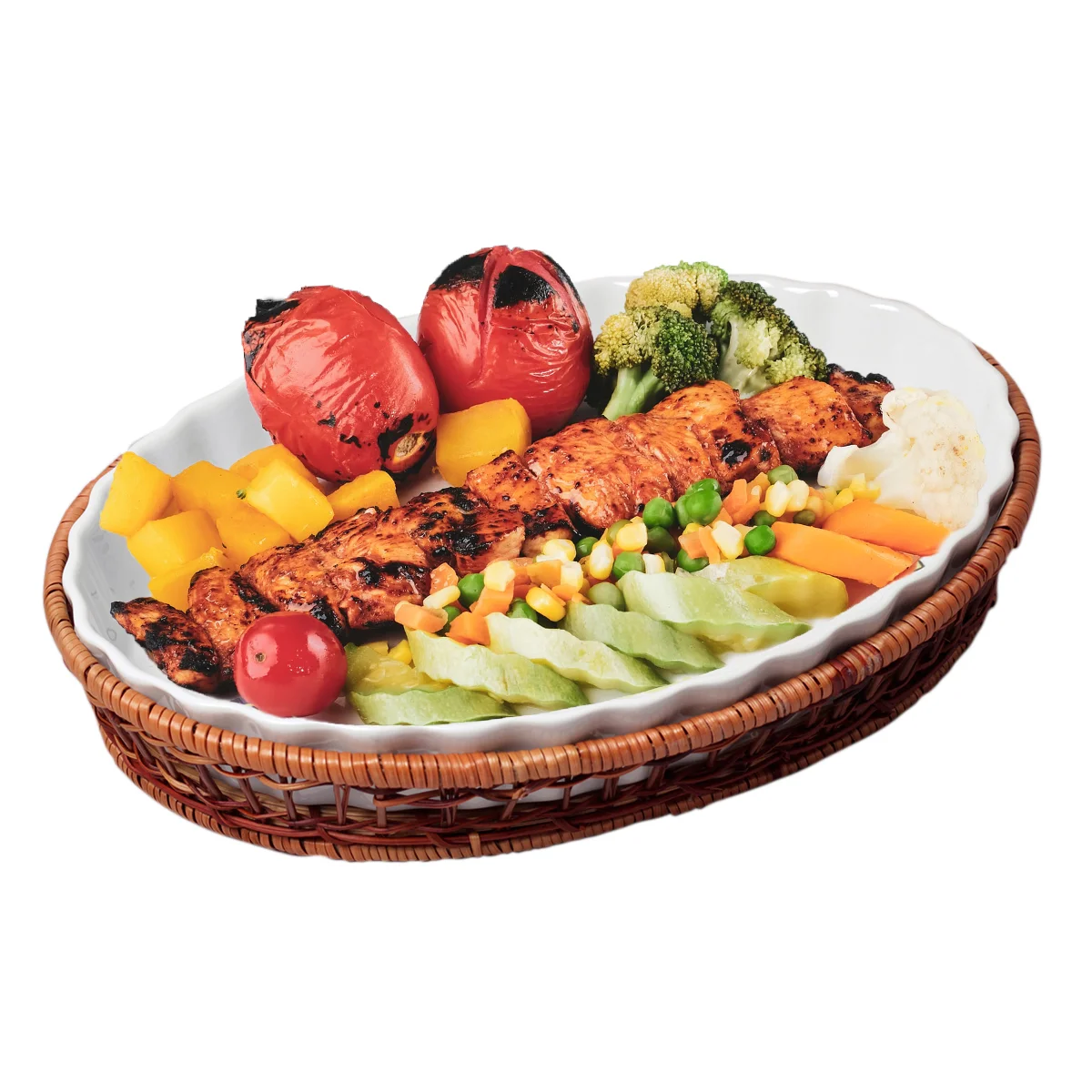 Форма керамическая для запекания 2,1 л. овальная Kamille KM-6300 (33х24х4,5 см) с ротанговой корзинкой
