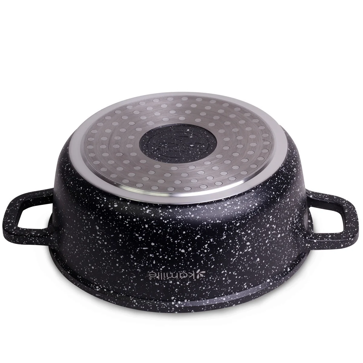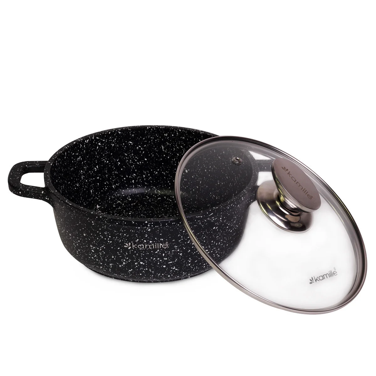 Кастрюля из литого алюминия Kamille — благодаря корпусу из литого алюминия тепло максимально равномерно распределяется по кастрюле. Отсутствие швов и крепежа на корпусе гарантирует более полноценный нагрев чаши кастрюли и исключает вероятность возникновения зон перегрева. Прочное антипригарное покрытие позволяет использовать посуду не только для варки, но и для тушения или жарения.