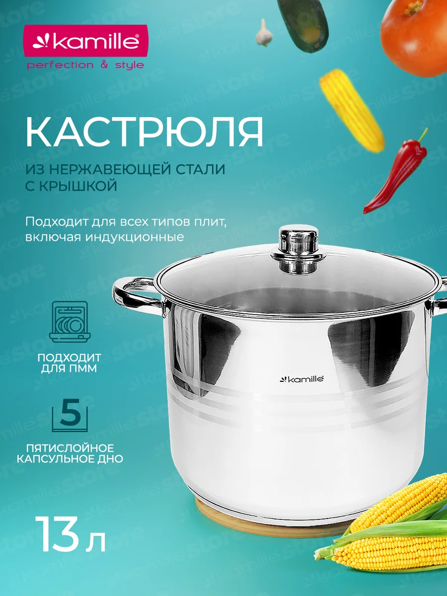 Кастрюля из нержавеющей стали 13 л. Kamille KM 5405