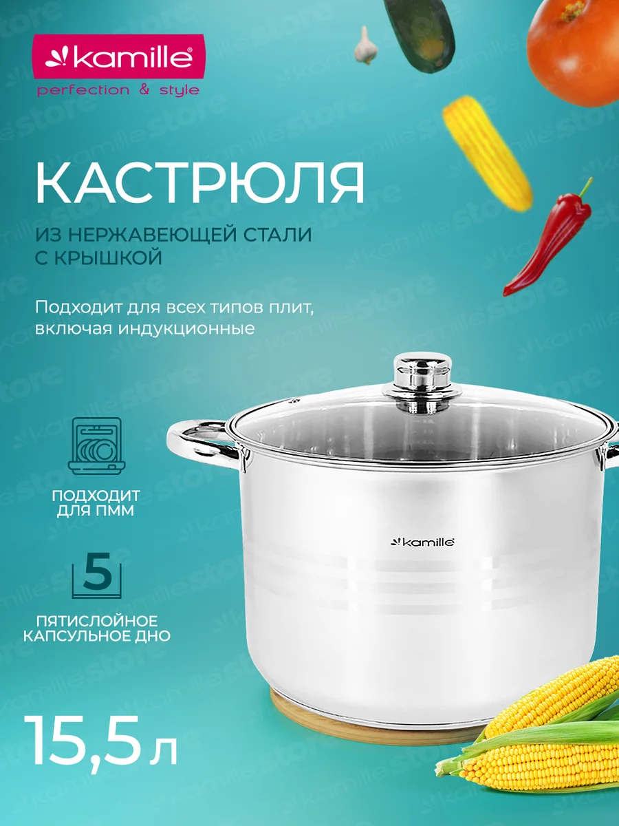 Кастрюля Kamille — нужная и незаменимая вещь на Вашей кухне. Посуда выполнена из качественных материалов с использованием современных технологий производства. Такая кастрюля имеет прекрасный внешний вид, оснащена индукционным капсульным дном и отличается высокой прочностью и долговечностью в использовании. Благодаря высокому качеству кастрюля будет служить Вам долго и принесет только удовольствие от использования.