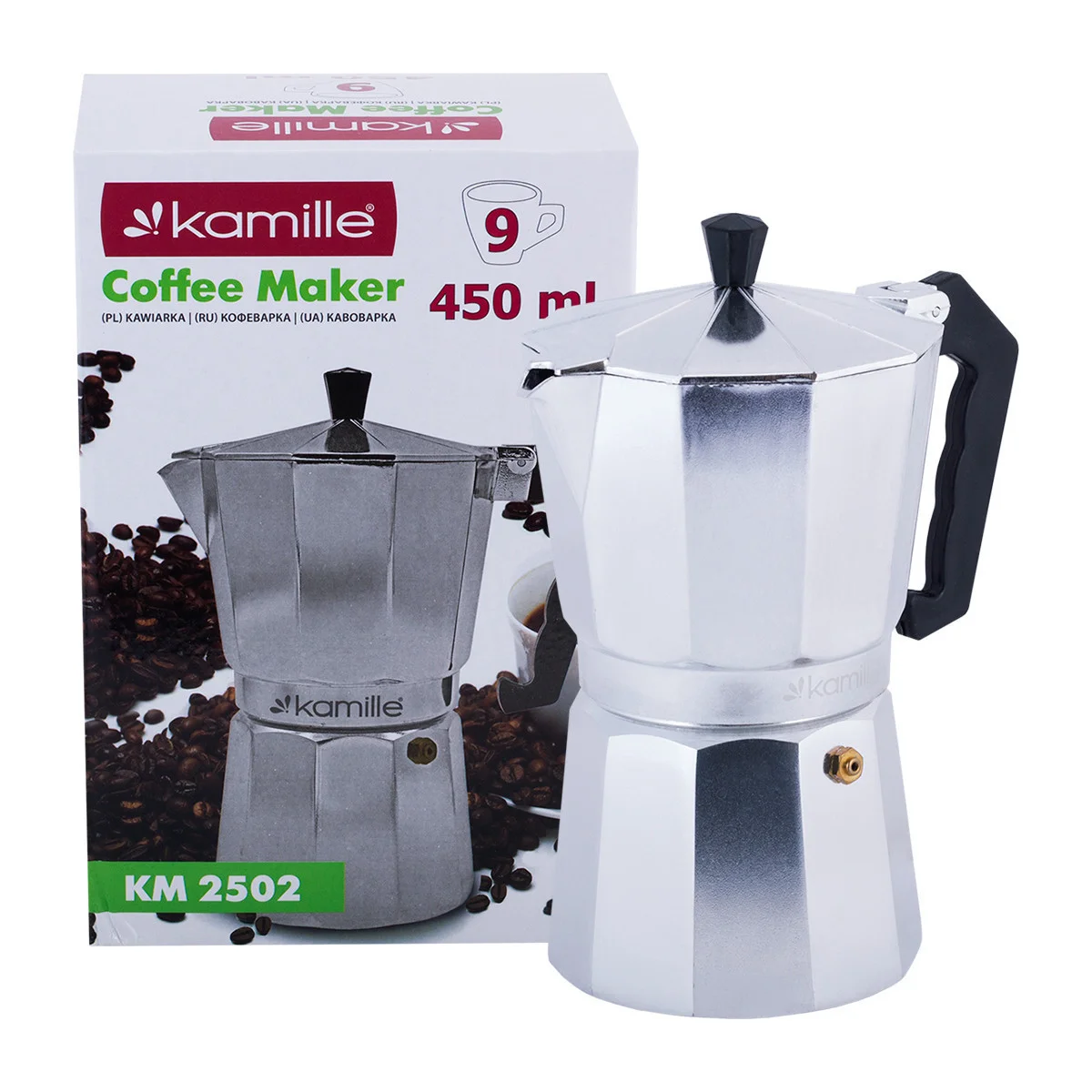 Кофеварка гейзерная 450 мл. (9 порций) из алюминия Kamille КМ-2502