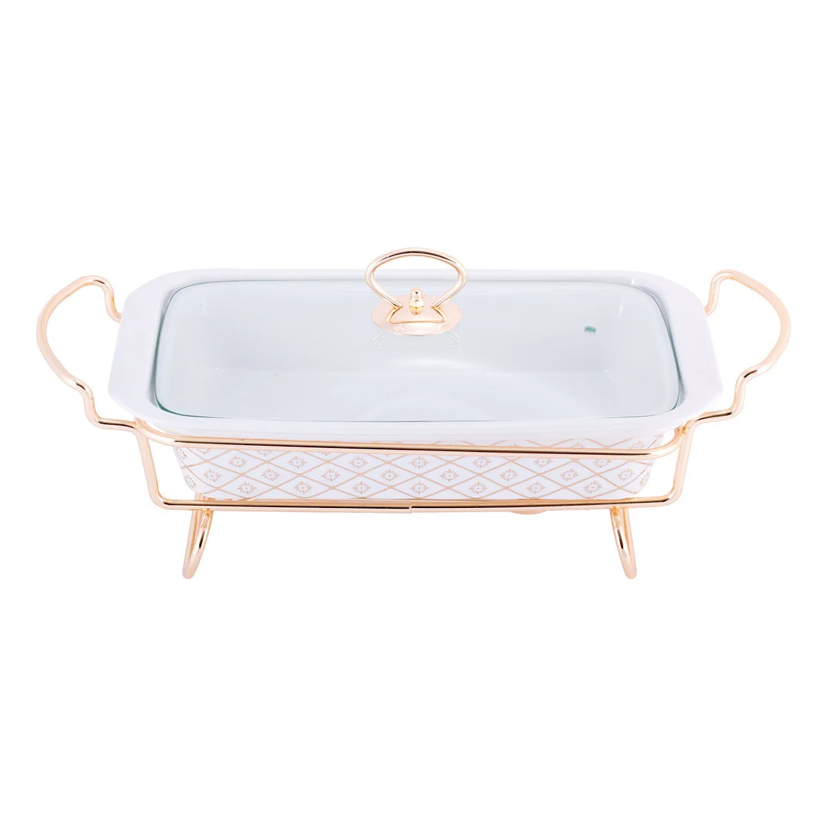 Мармит керамический прямоугольный Kamille KM-6416 с подставкой (золото)