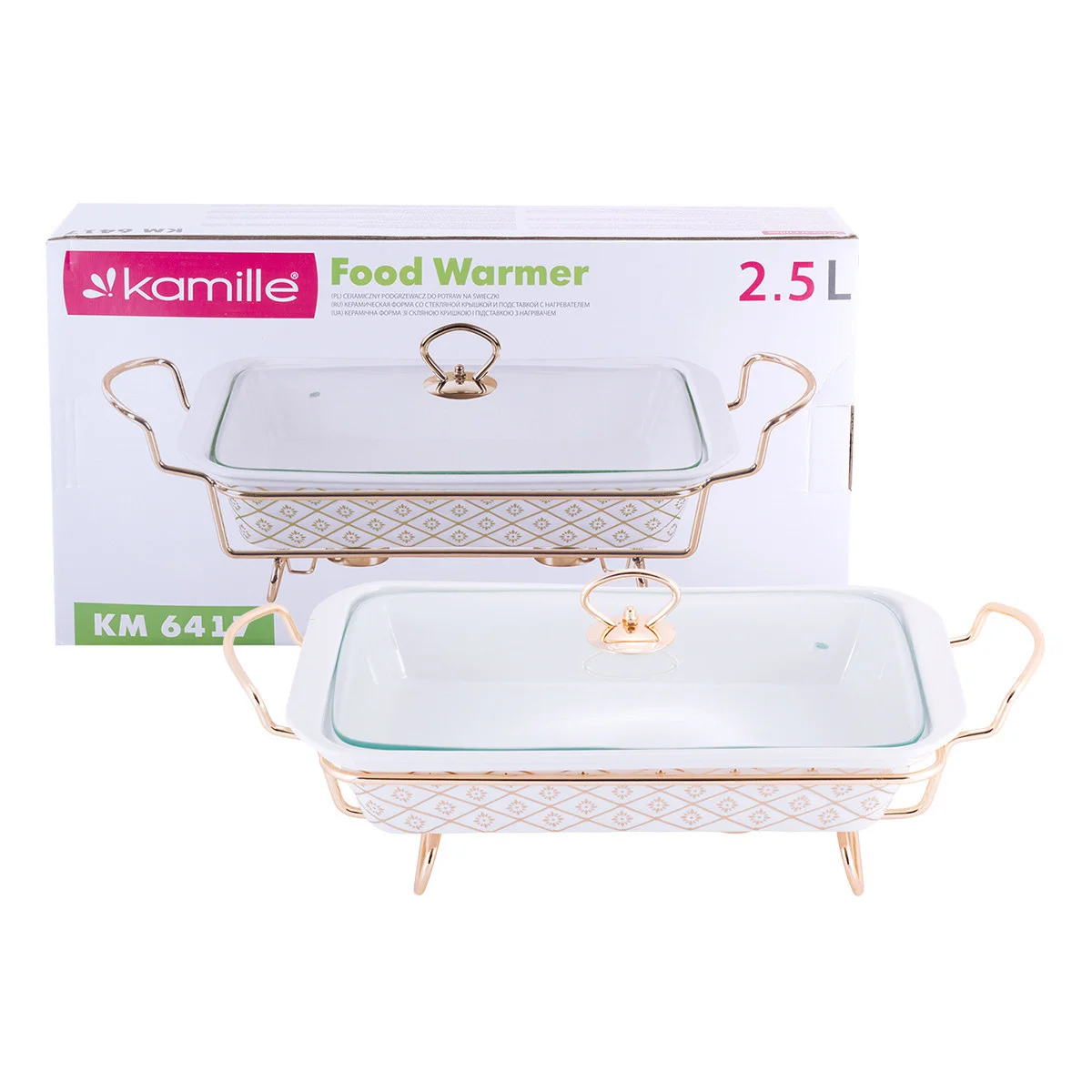 Мармит керамический прямоугольный 2,5 л с позолотой Kamille KM-6417 (36,5х23х6 см.)