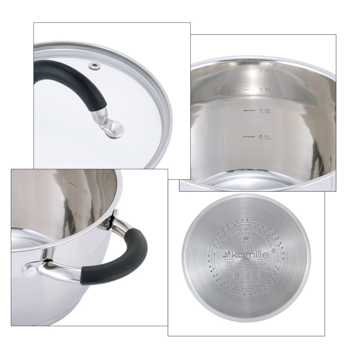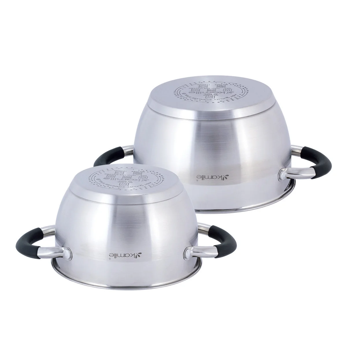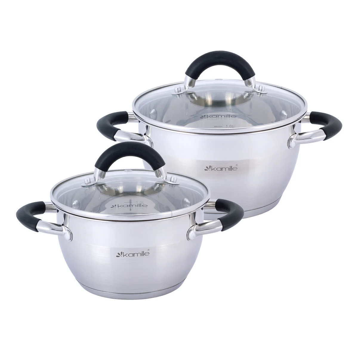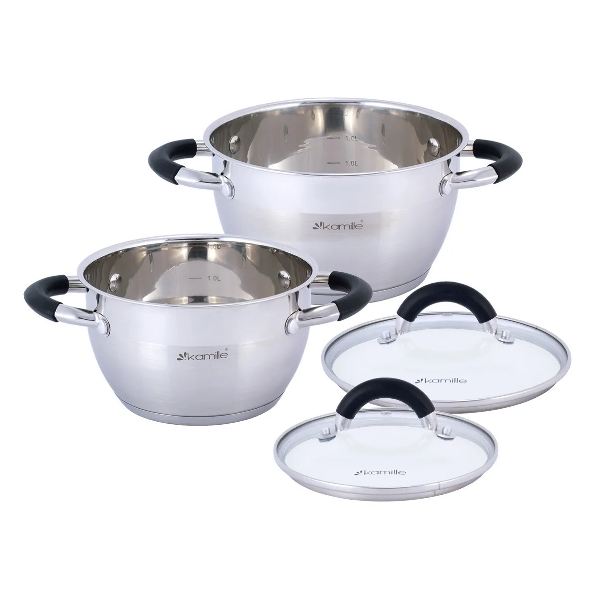 Набор кастрюль 4 предмета из нержавеющей стали Kamille KM-5753 (1,8 л; 2,5 л) с силиконовыми вставками на ручках